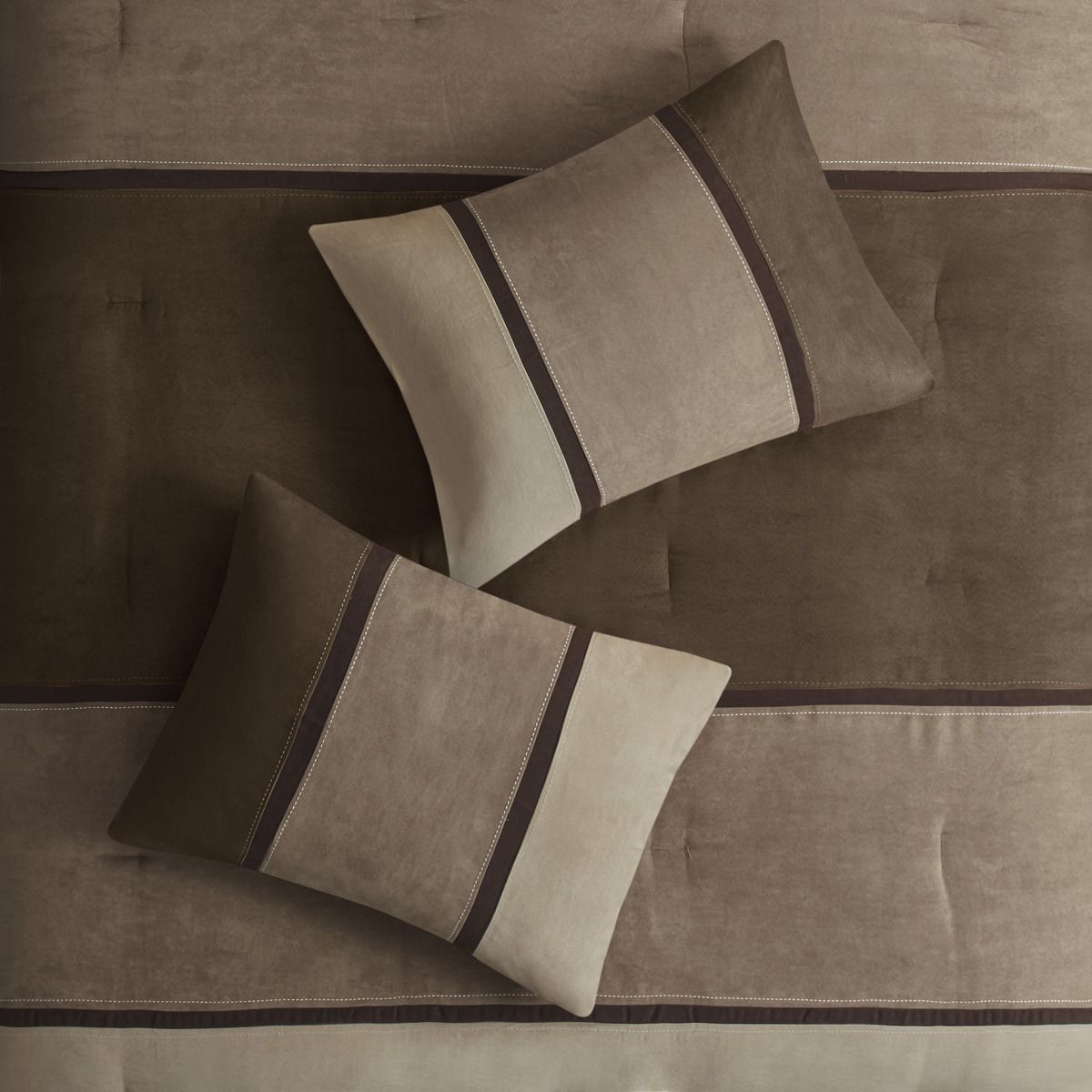 Queen Faux Suede Comforter Set 7 Piece Grey Brown Charcoal