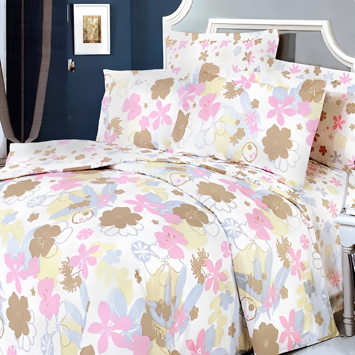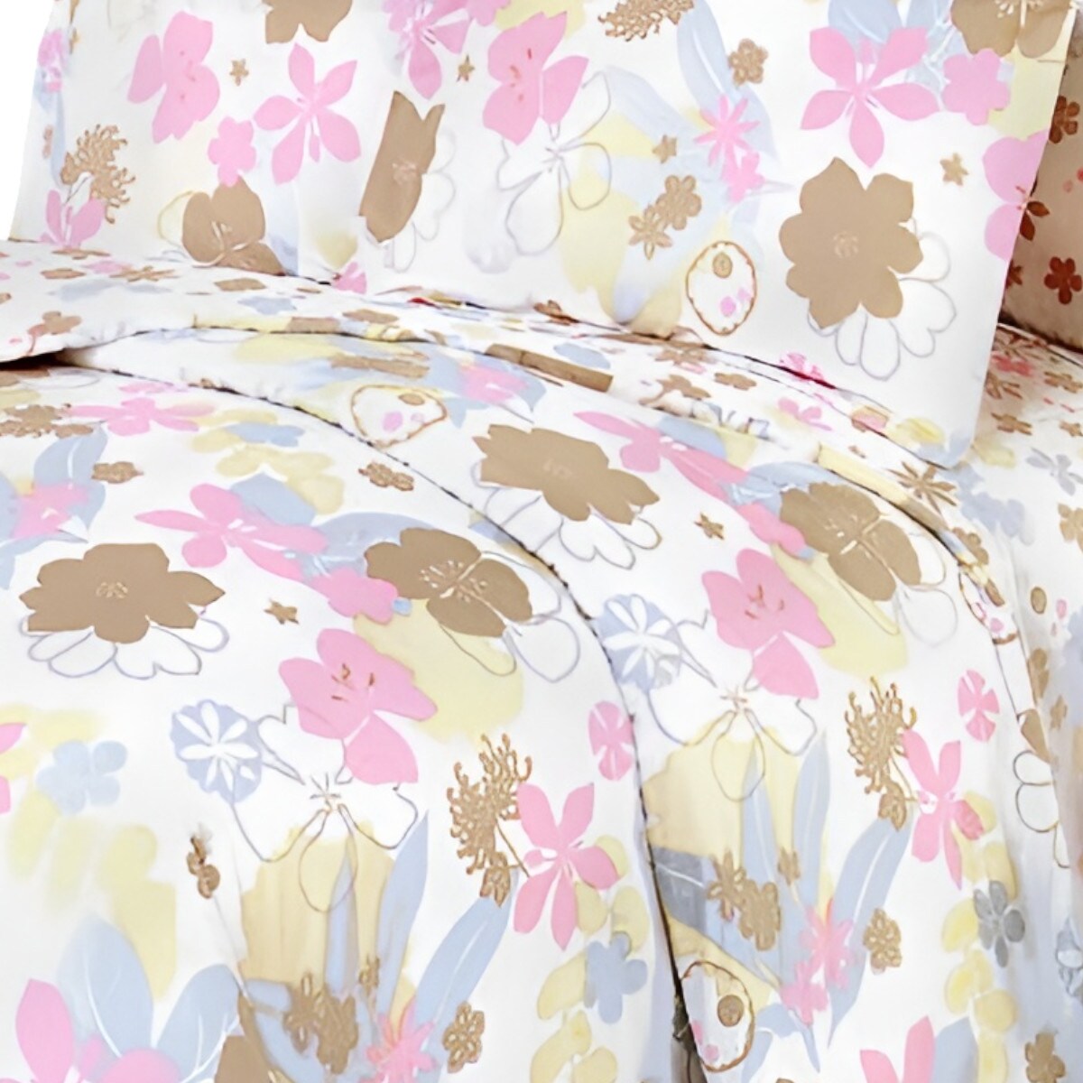 Queen/King 4-Pc Cotton Duvet Bedding Set Floral Deep Pocket Pink