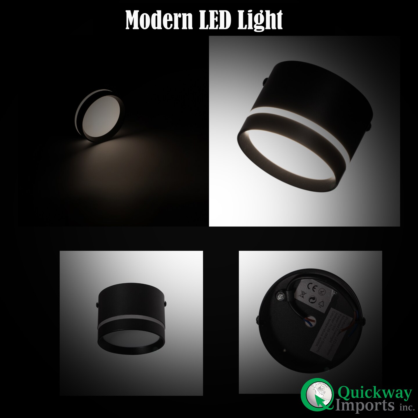 Quickway Imports 15W Surface-Mounted LED Cylinder Downlight Modern 4000K White Spotlight Black Aluminum Frame Perfect for Residential & Commercial Interiors Including Homes Offices & Retail Spaces