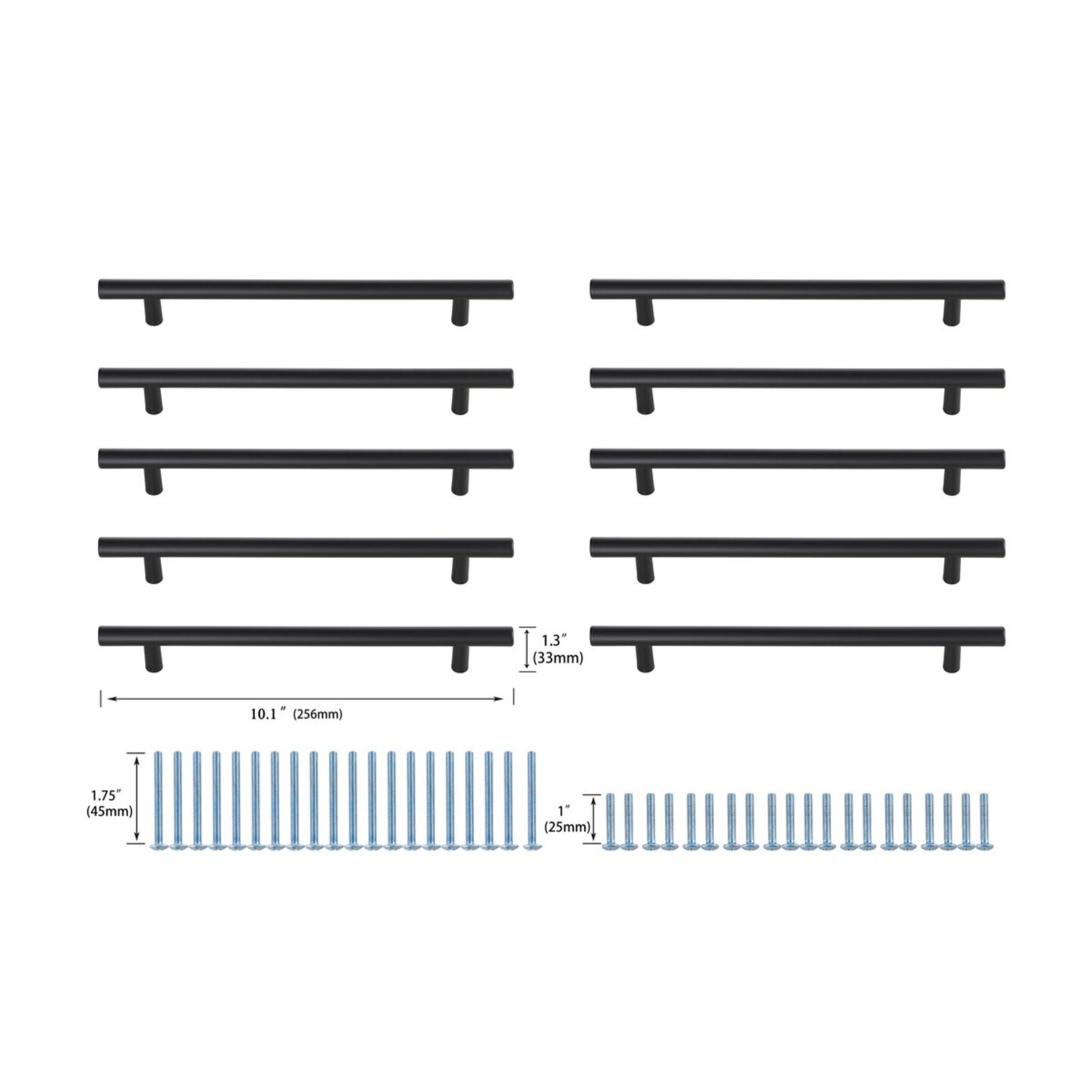 Quinn 7-9/16" Center to Center Matte Black Bar Pull Multipack (set of 10)
