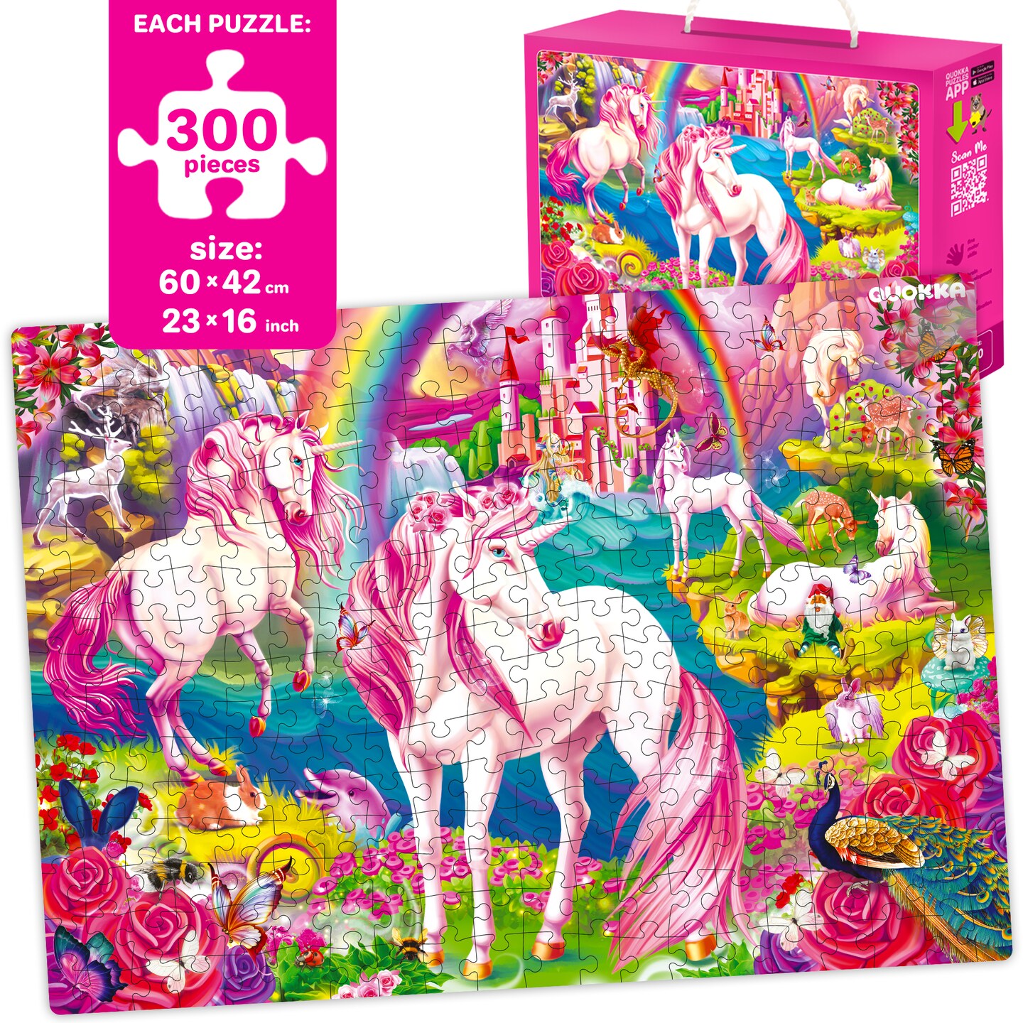 QUOKKA 300 Pieces Puzzles for Kids Ages 10-12 - 3X Set Floor Jigsaw Puzzles for 8-10 yo - Toy for Learning Unicorn – Jigsaw Educational Game for Adult Family Boy and Girl