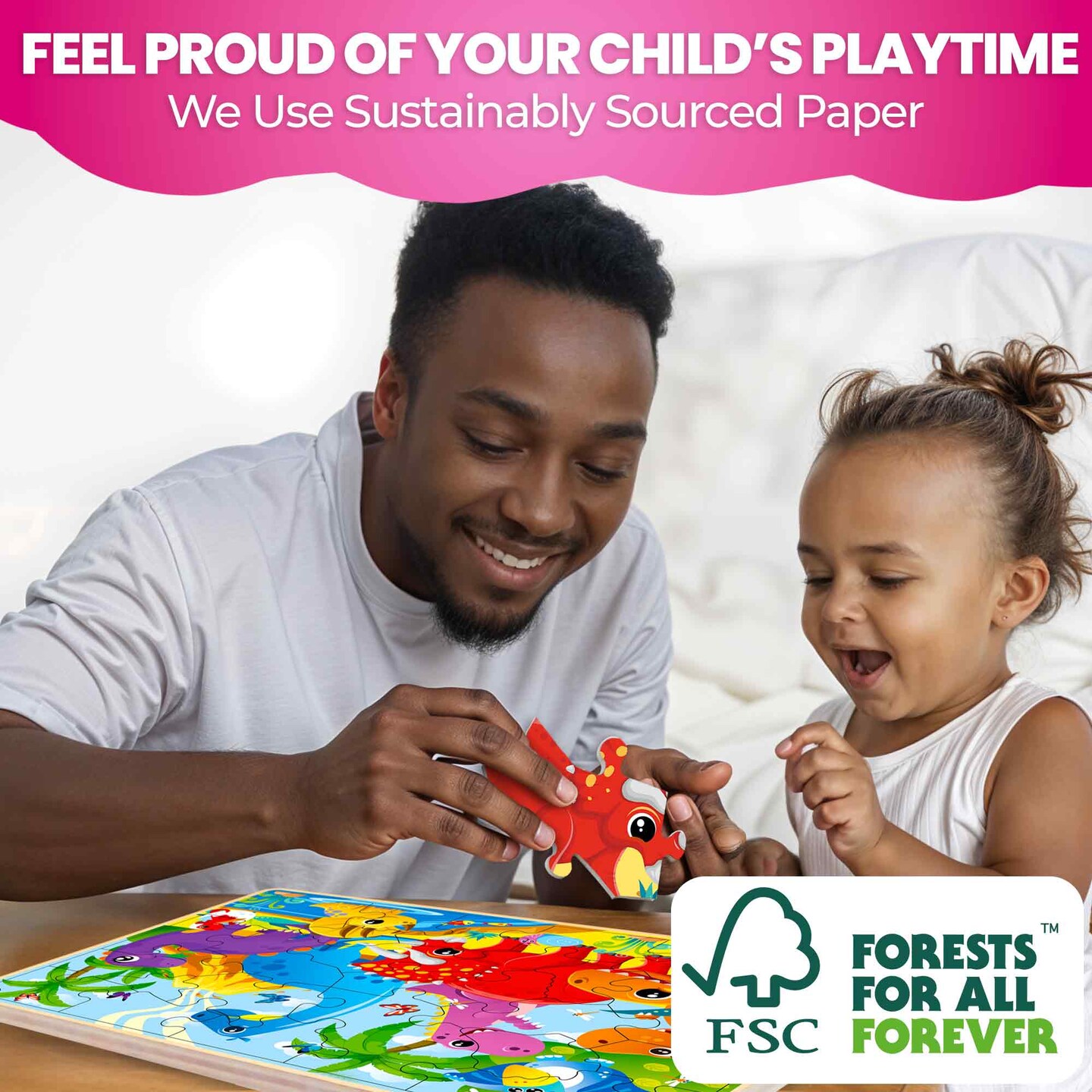 QUOKKA 4SET Puzzles for Kids Ages 4-6 - 36 Pcs Wooden Realistic Montessori Toddler Puzzles Ages 3-5 - Animals Dinosaurs Learning Games for Boys and Girls 4-8 Year Olds