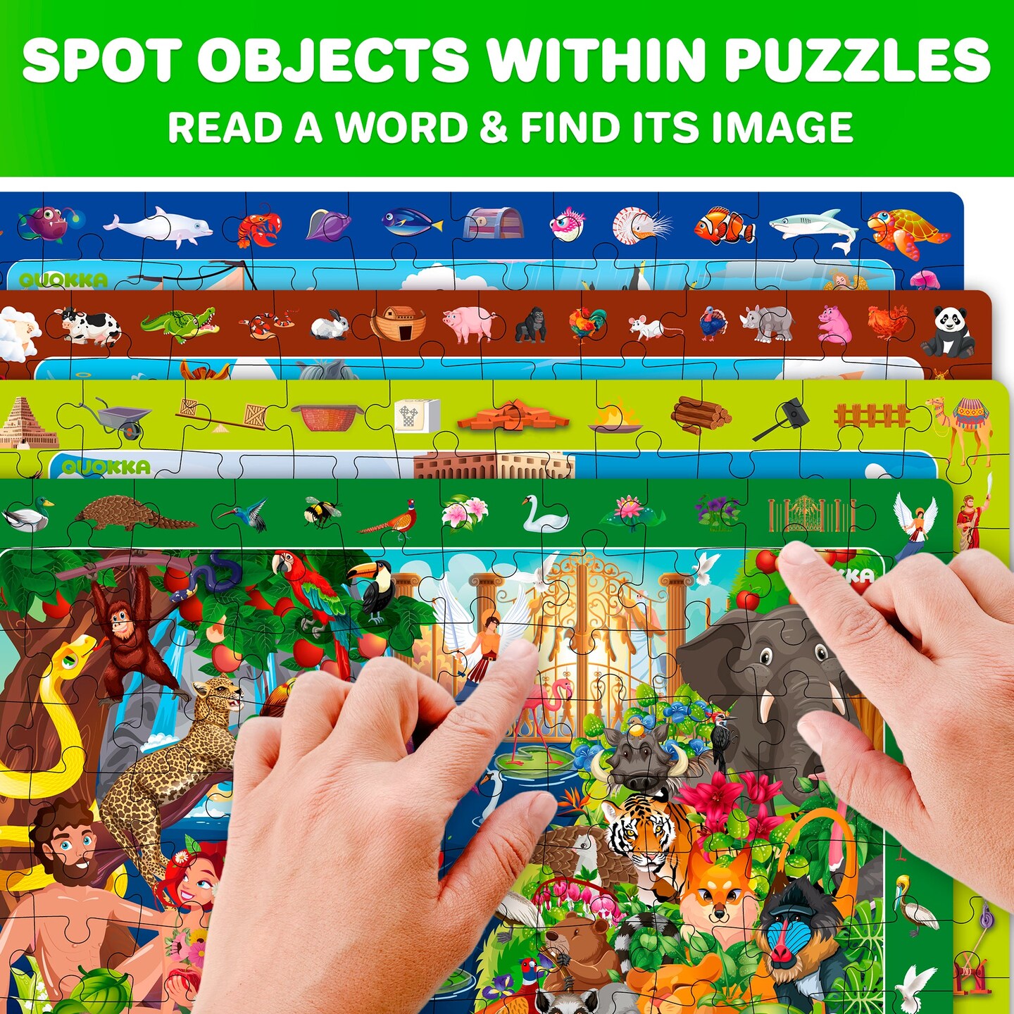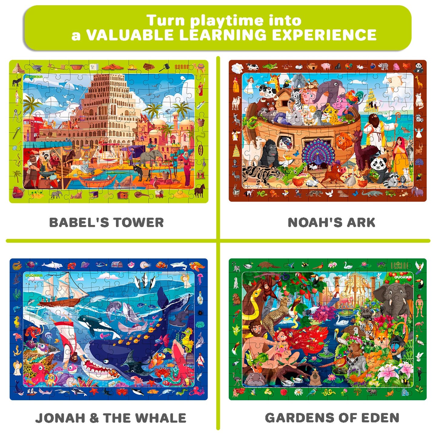 QUOKKA 60 Piece Kids Puzzles Ages 5-8 - Set of 4 Bible Jigsaw Puzzles for Kids 4-6-10 Year Old - Tower of Babel | Noah`s Ark | Eden Toys for Children 5-7 yo - Christian Gifts for Boys & Girls