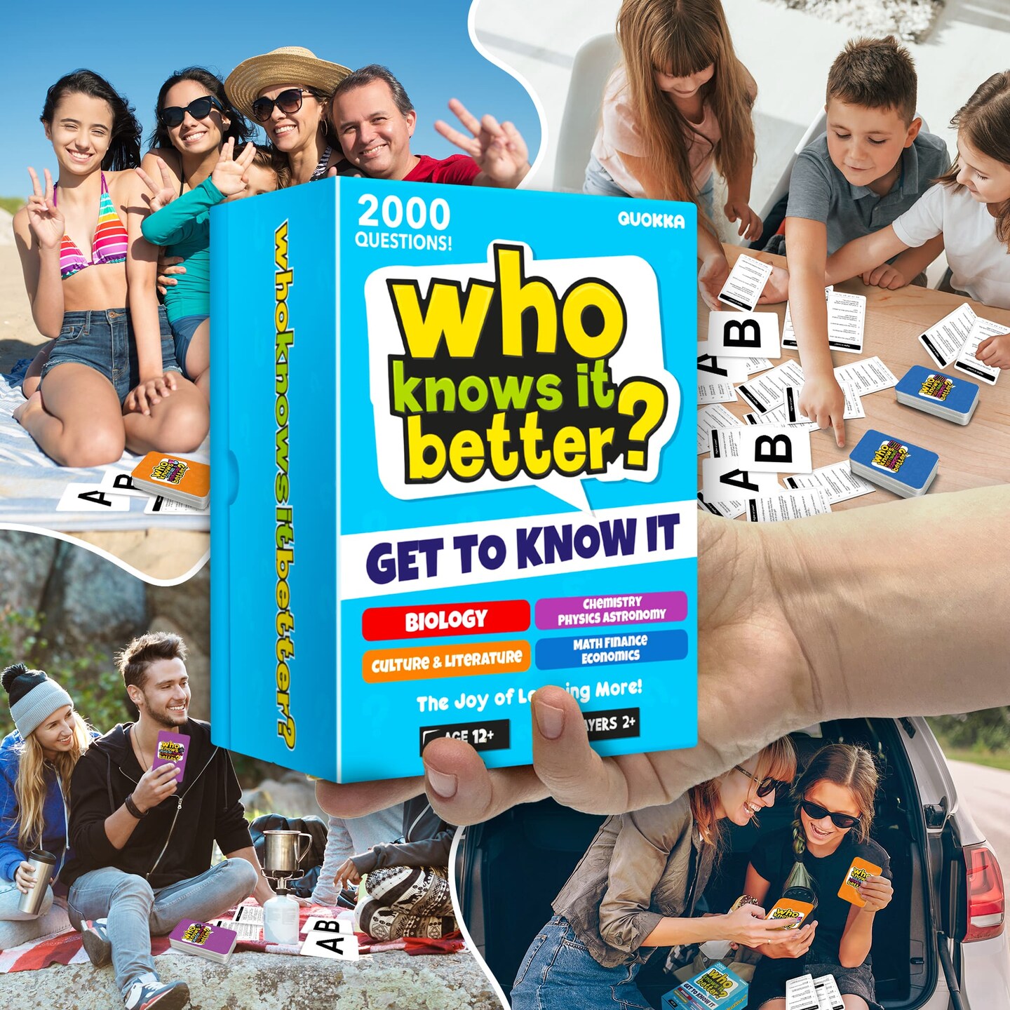 QUOKKA Board Games for Kids 8-12 and Family - Set of 4 Who Knows It Better? - 2000+ Questions Across Biology, Culture, STEM and Math - Educational Trivia Cards for Learning and Game Night