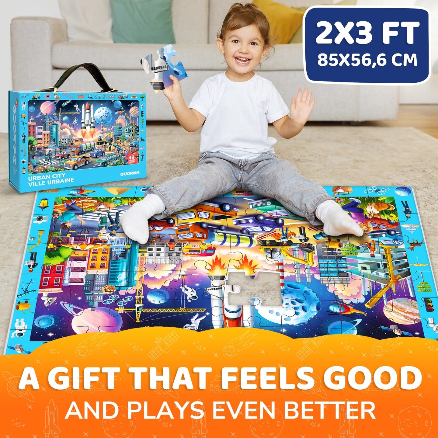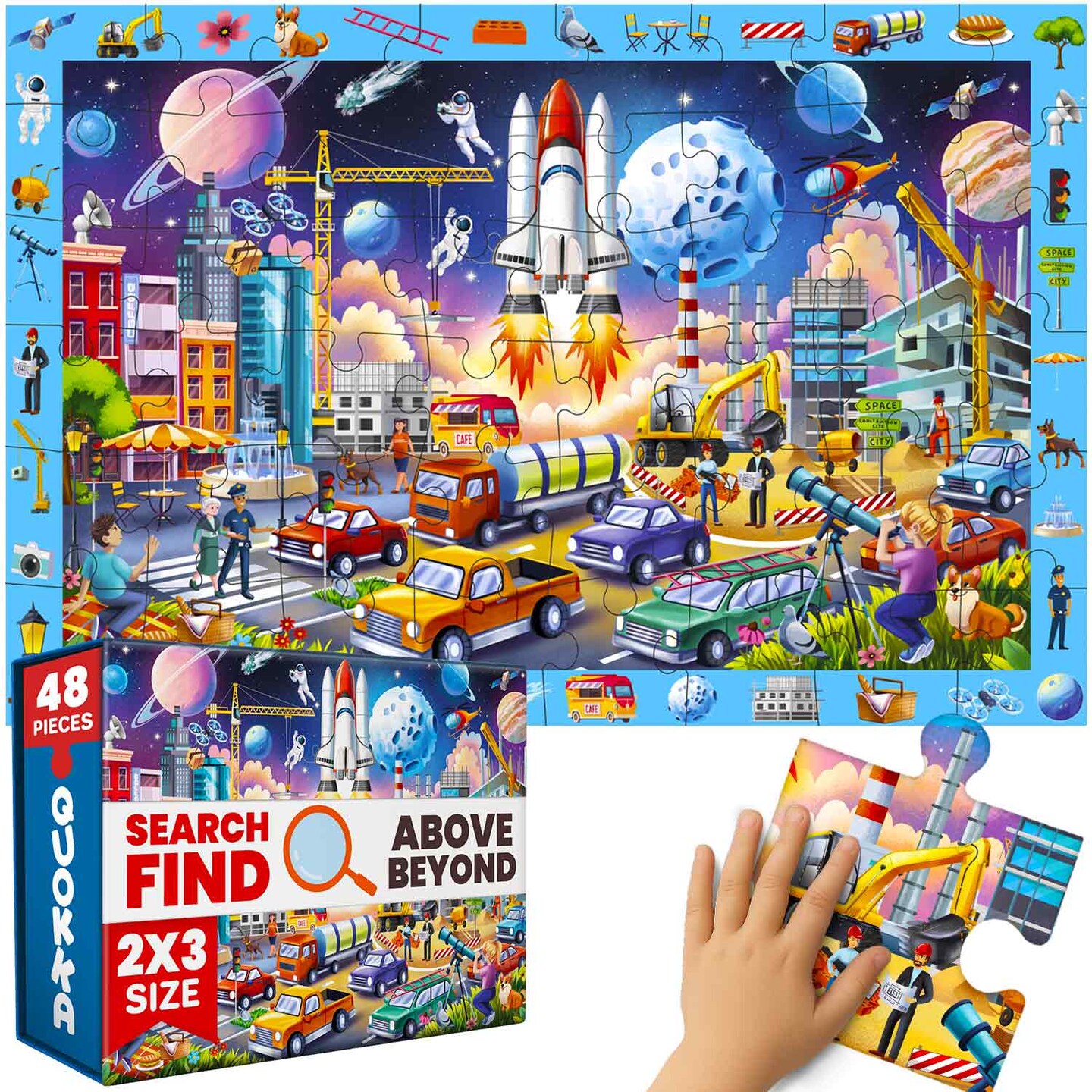 QUOKKA Floor Puzzles for Kids Ages 4-8 – 2x3 FT Giant Search and Find Educational Jigsaw – 48 Large Pieces – Above and Beyond Observational Scene