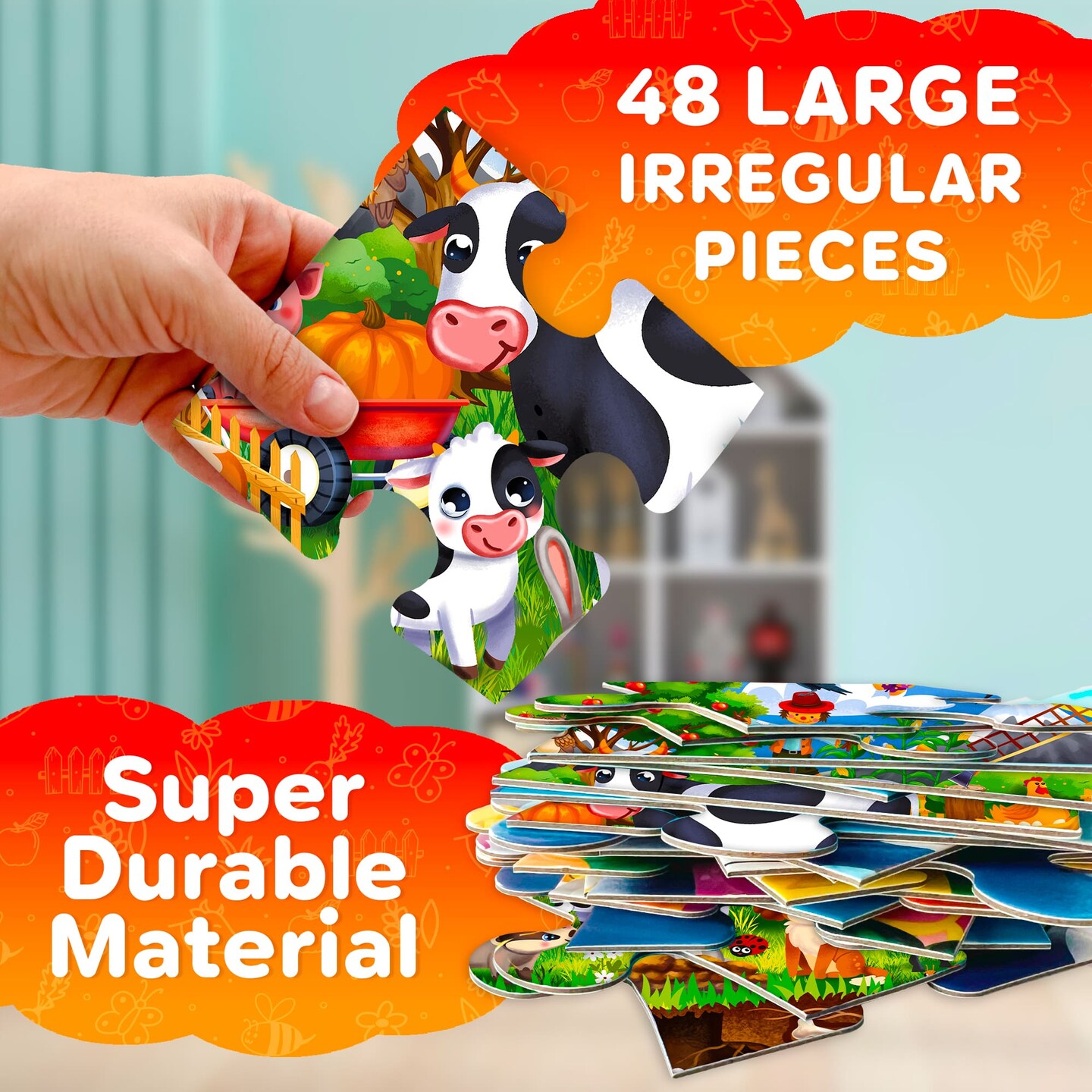 QUOKKA Floor Puzzles for Kids Ages 4-8 – 2x3 FT Woodland Farm Giant Search and Find Jigsaw – 48 Large Pieces – Above and Beyond Observational Scene