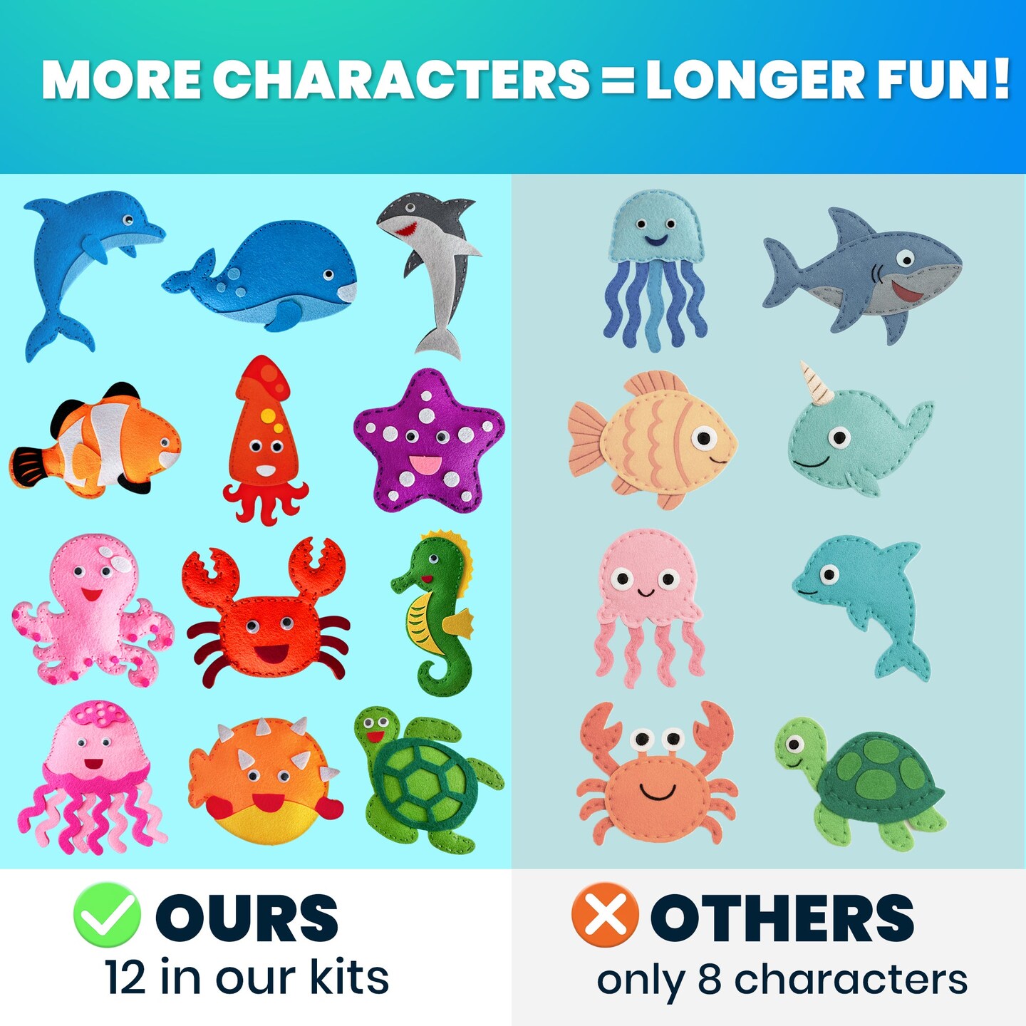 Quokka Kids Crafts Ages 4-8 - Arts Crafts for Kids Ages 6-8 Girls Boys - Sea Animals Sewing Kit Basic