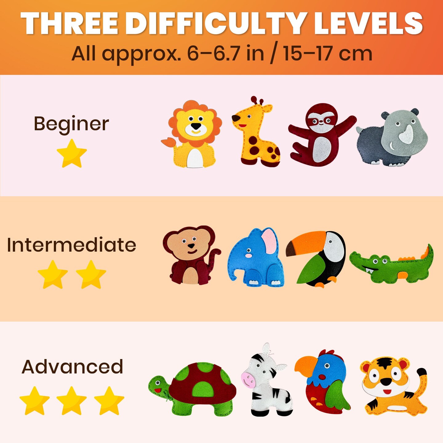 Quokka Kids Crafts Ages 4-8 - Arts Crafts for Kids Ages 6-8 - Wild Animals Sewing Kit Basic