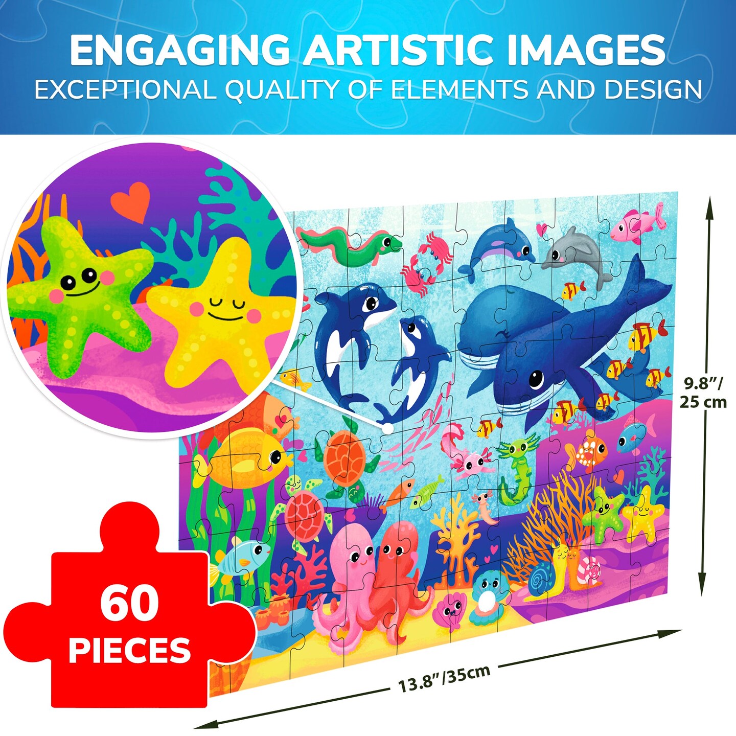 QUOKKA Puzzles for Kids Ages 4-6 – 60 Piece Jigsaw Puzzles for Toddlers Ages 3-5 with Ocean Animals