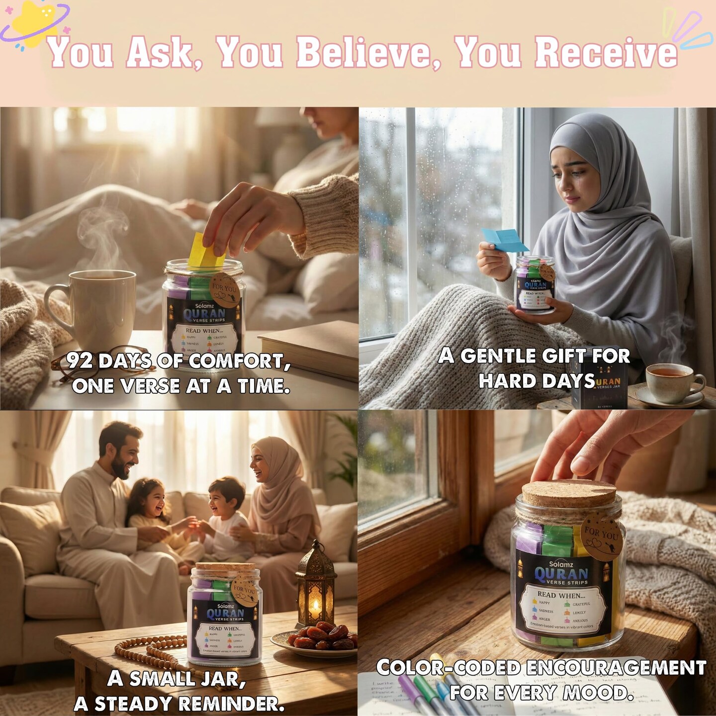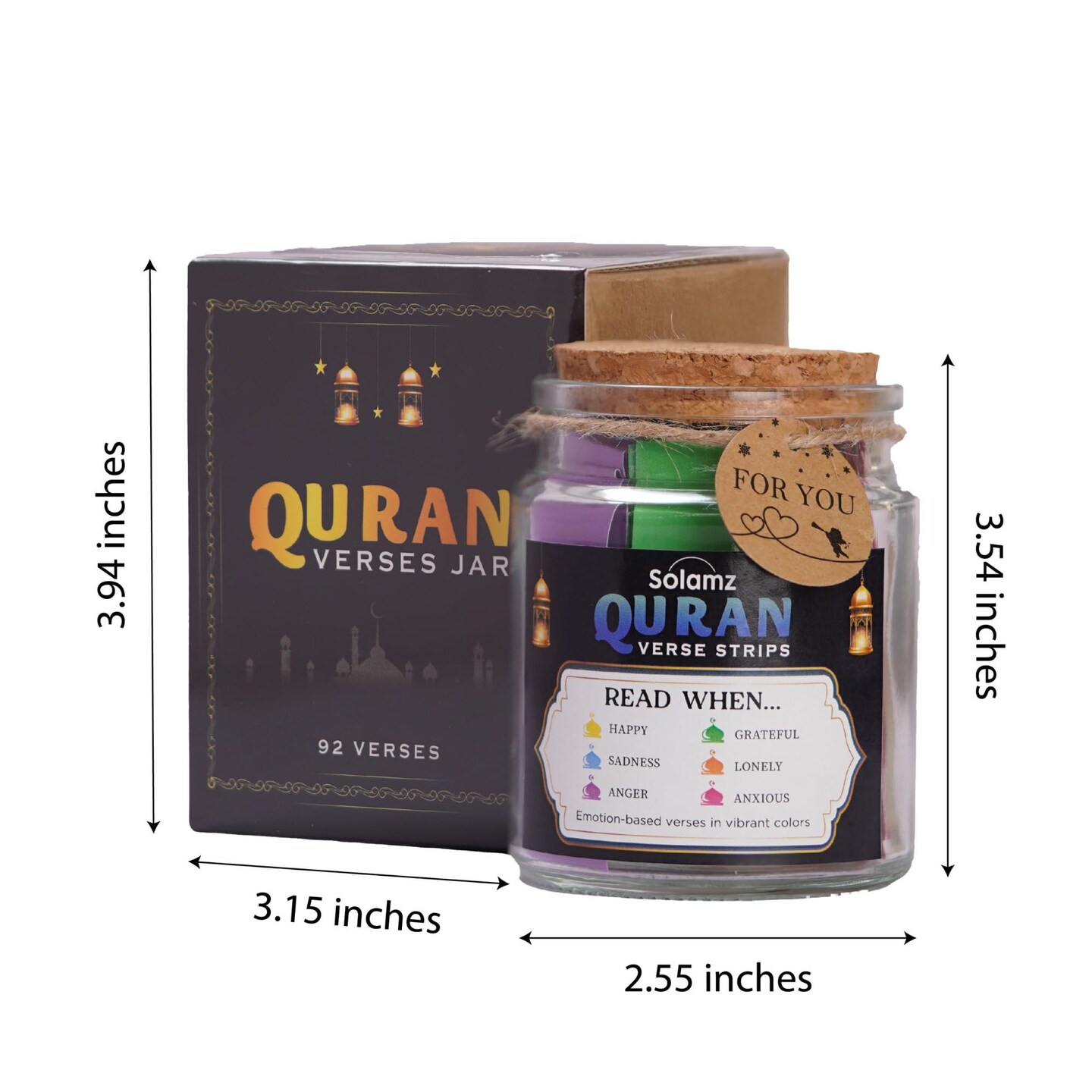 Quran Verses Jar – 92 Inspirational Islamic Quotes for Reflection & Gratitude | Ramadan Gift, Muslim Gift for Women & Men, Prayer Jar, Faith-Based Decor, Eid & Daily Affirmations