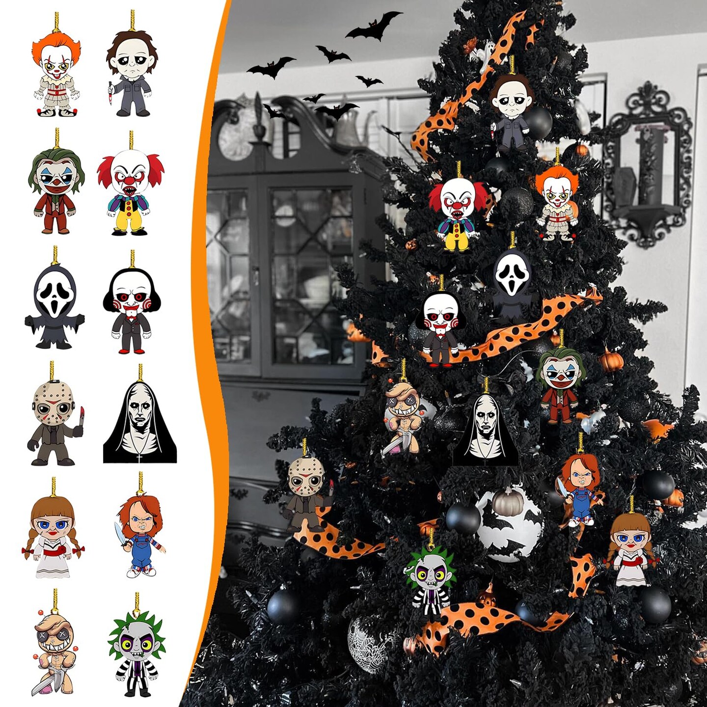 Q-Version Halloween Tree Decoration - 12 Pcs Acrylic Pendant, Large Scary Movie Characters, Funny Cartoon Ornament