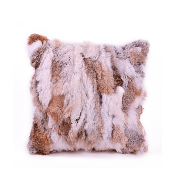 Rabbit Fur Patchwork Pillow 16X16" Cover