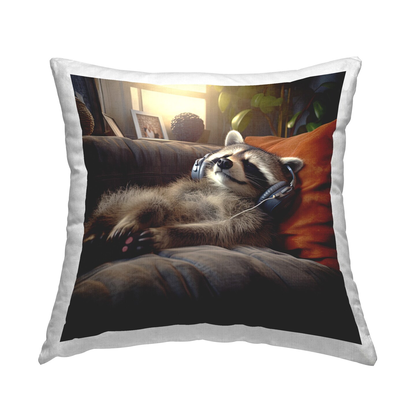 Raccoon & Relaxing Music Design by Jim Baldwin Throw Pillow