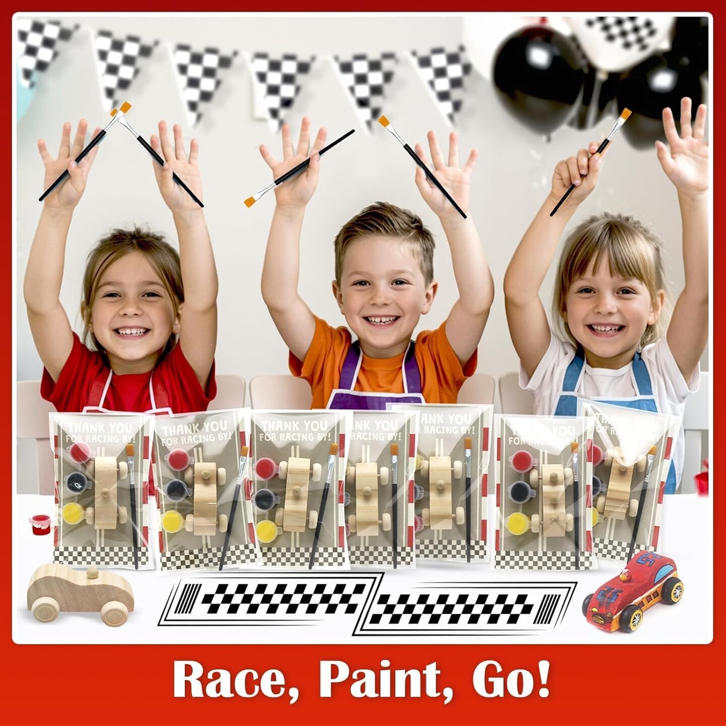 Race Car Party Decorations & Favors – 12 Unfinished Wooden Cars, Wheel-Themed Goodie Bag Stuffers for Boys’ Fast Car Birthday Party