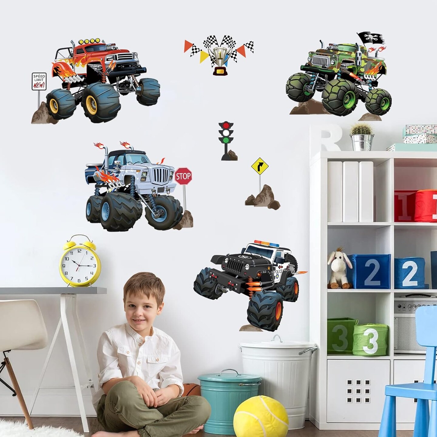 Racing Car Wall Stickers Truck Vehicles Peel and Stick Wall Art Decals (Multi)