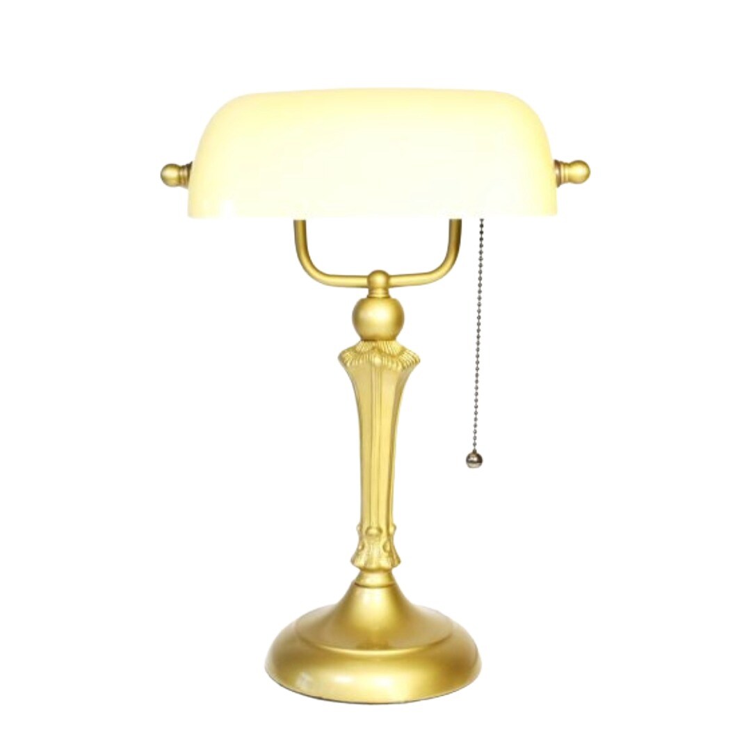 Rainbow Art Glass Blown Glass Banker Lamp, Yellow with Bright Gold Finish Base, Nicely Weighted, 17" Tall