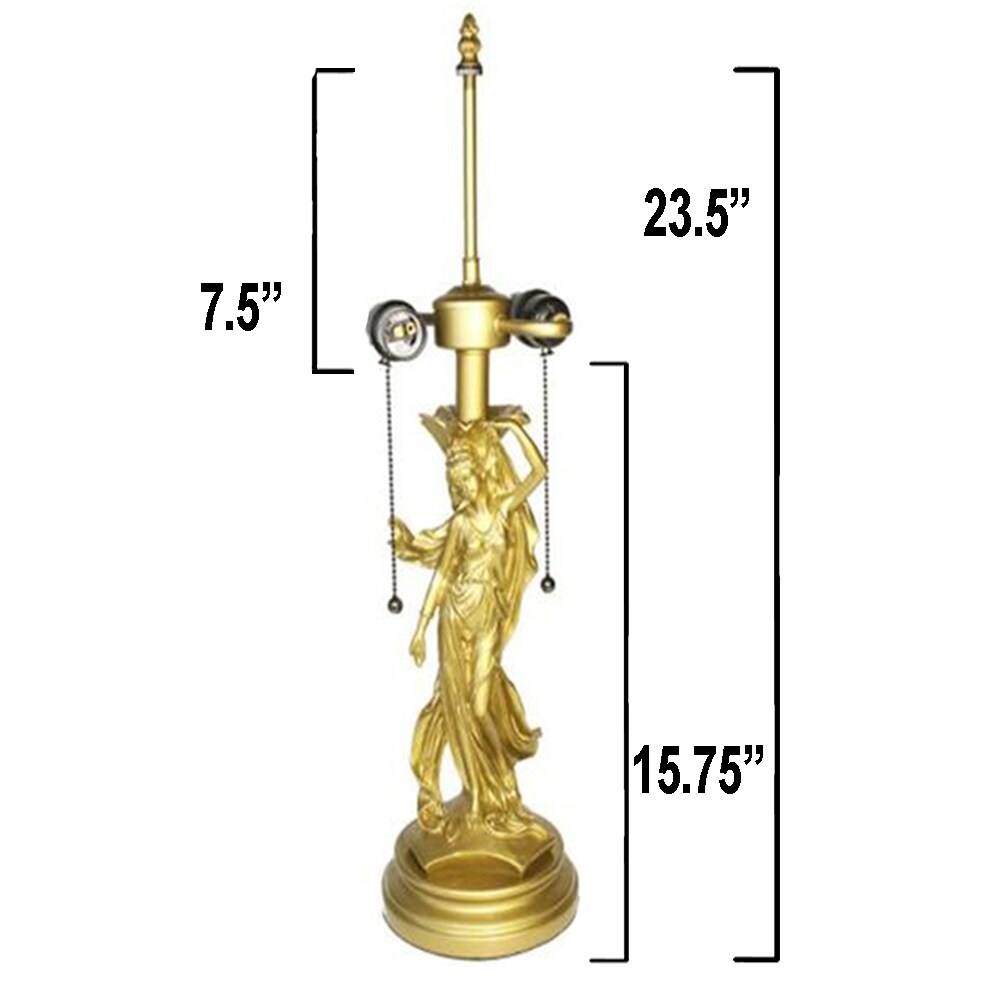 Rainbow Art Glass Lady Metal Lamp Base, Bright Gold Finish, Nicely Weighted, 23.25" Tall