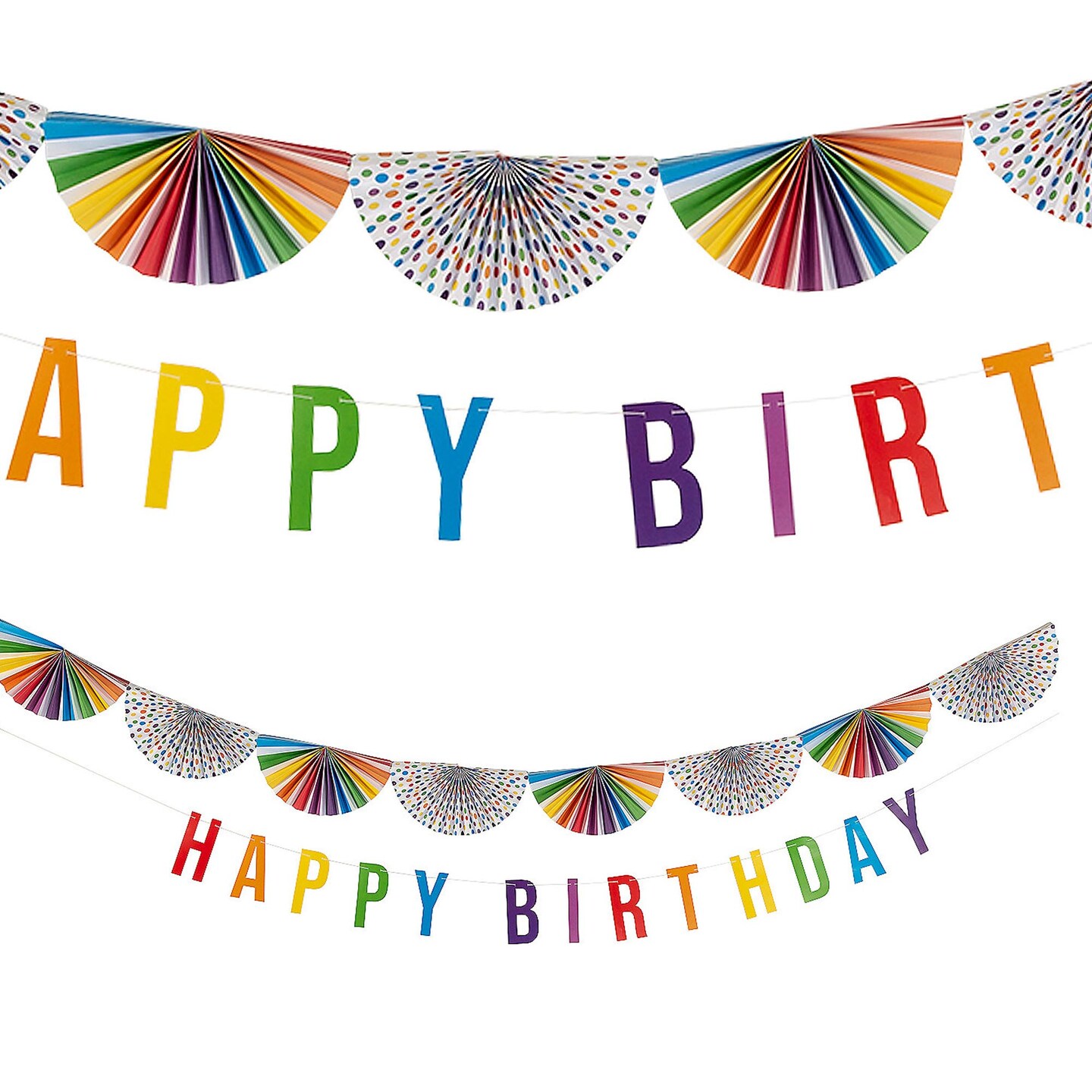 Rainbow Bunting Happy Birthday Garland 2 Pc. Colorful Party Decoration Set