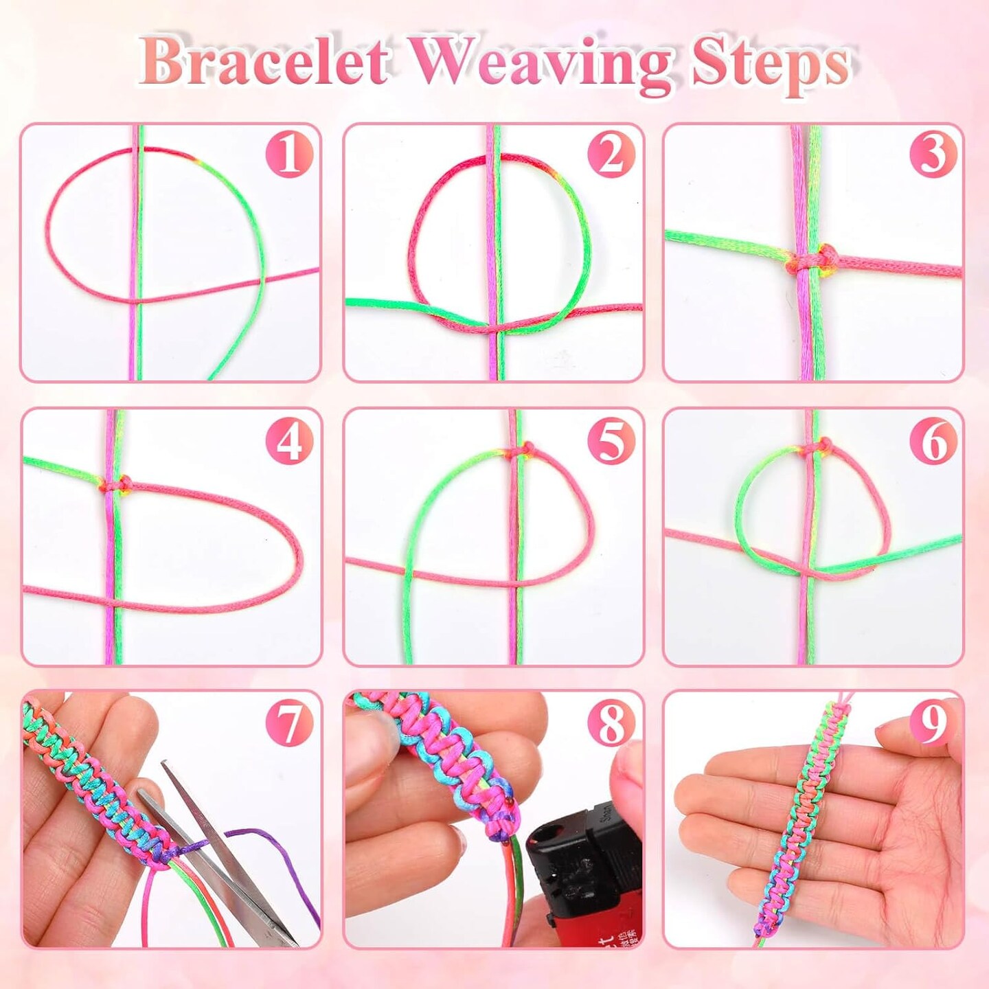 Rainbow Color Nylon Cord, Nylon Craft String, Silky Satin Rattail Cord Beading String for Braided Bracelets, Pendants Necklace, Macrame Keychains, Lanyards, Drawstring Bags, DIY Crafts, Sewing