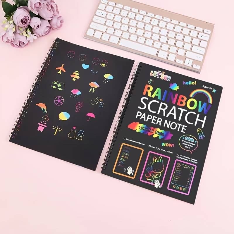 Rainbow Coloring Scratch-Off Notebook Set for Kids 12 Sheets