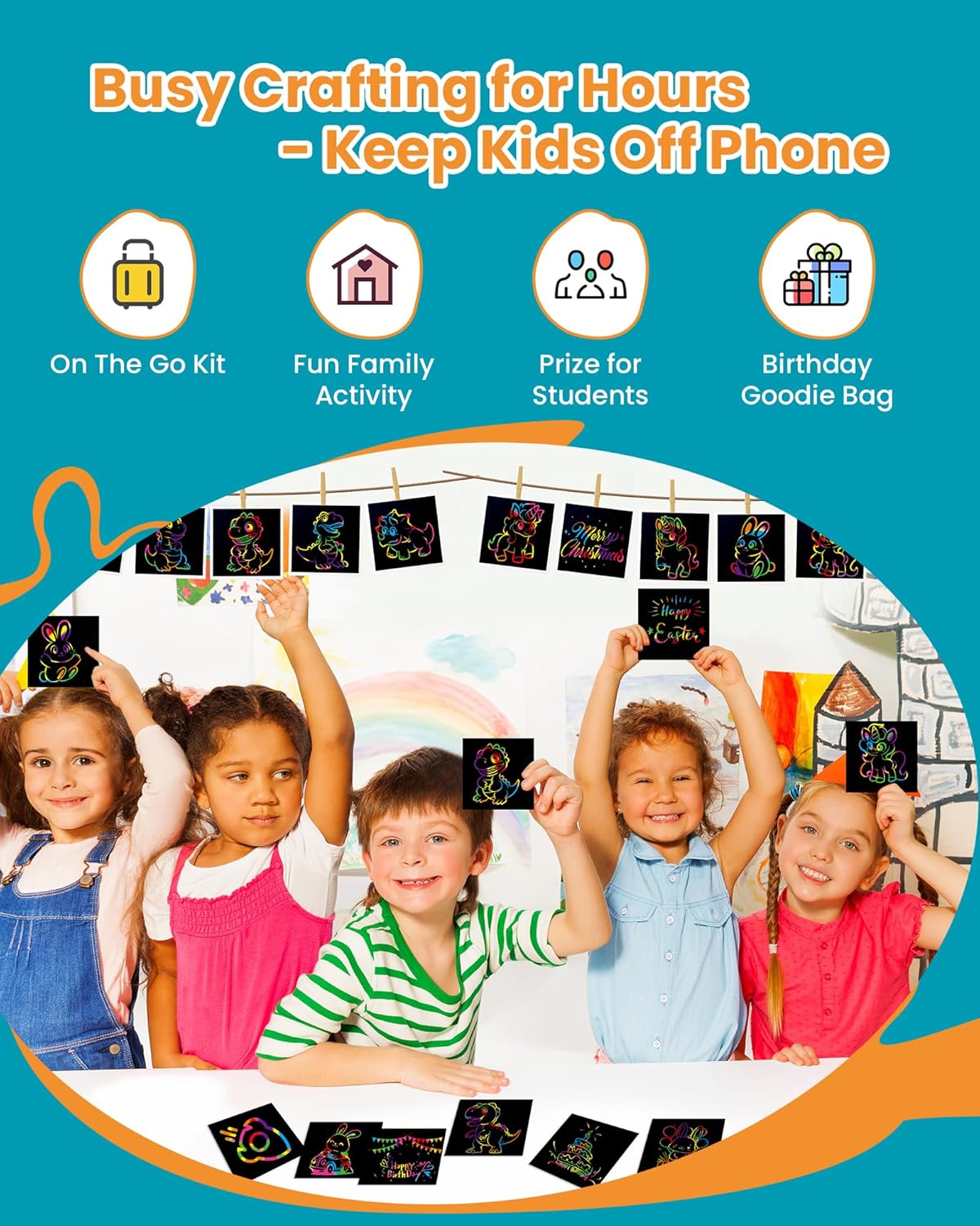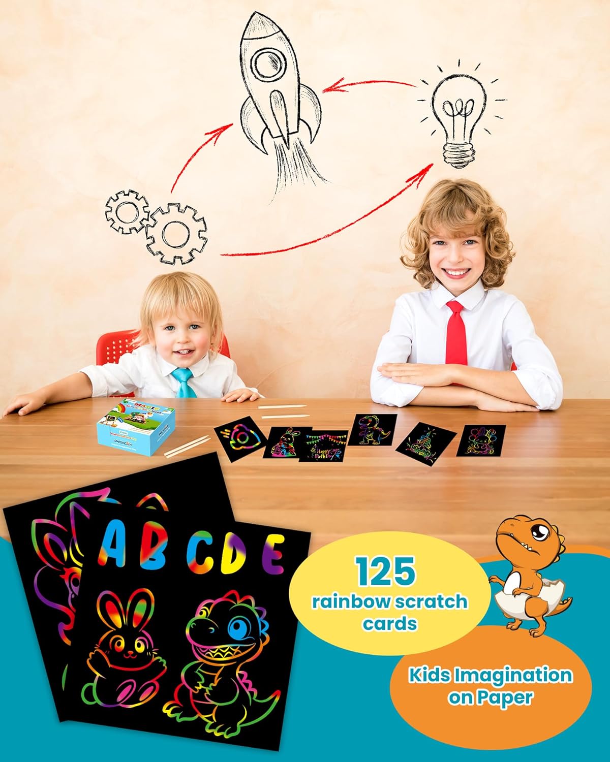 Rainbow Mini Scratch Art Notes for Kids – 125 Scratch Paper Cards with 5 Wooden Stylus – Arts & Crafts Party Favors, Easter Basket Stuffers, Birthday Gift for Girls & Boys (Rainbow) 3.5 x 3.5 x 1.5 inches