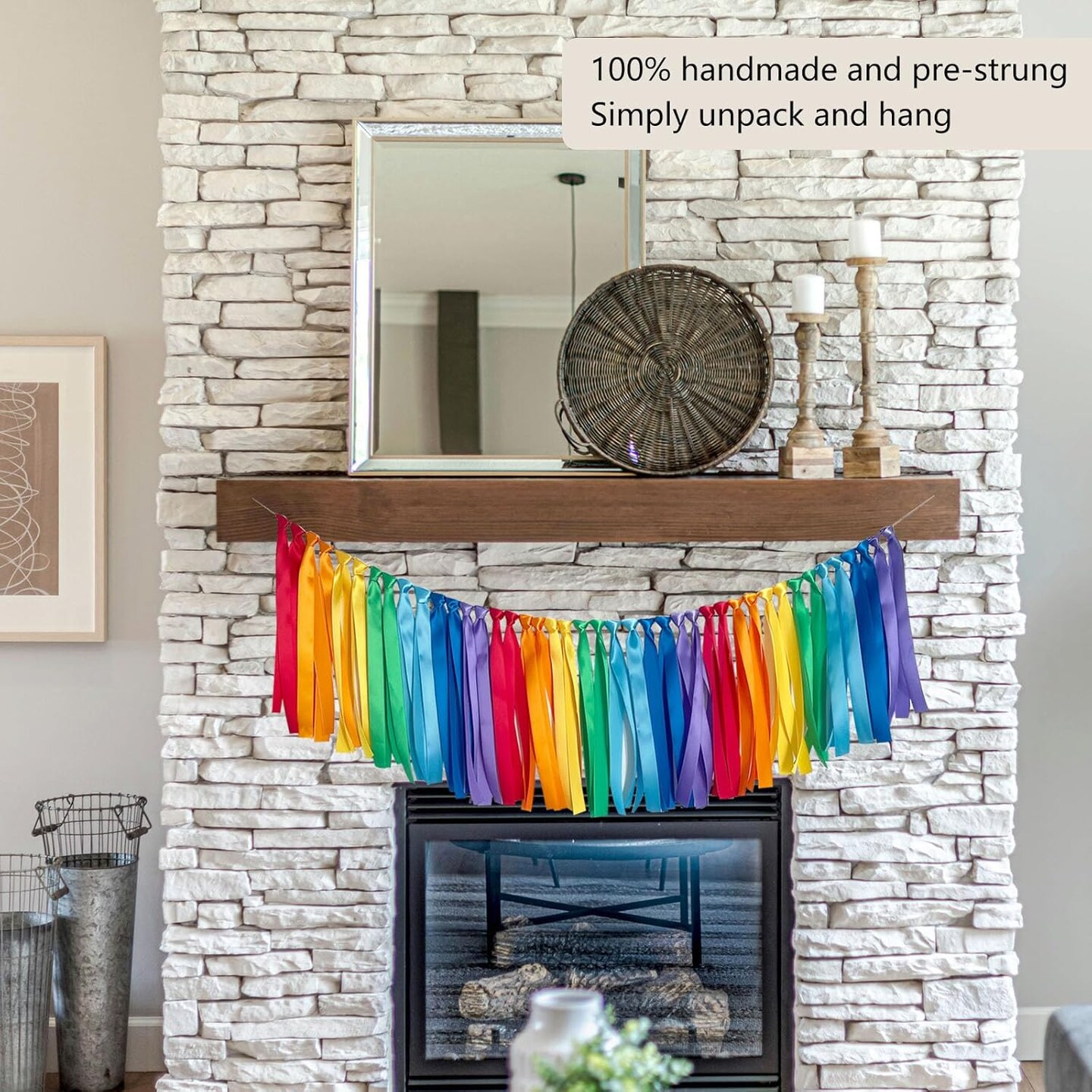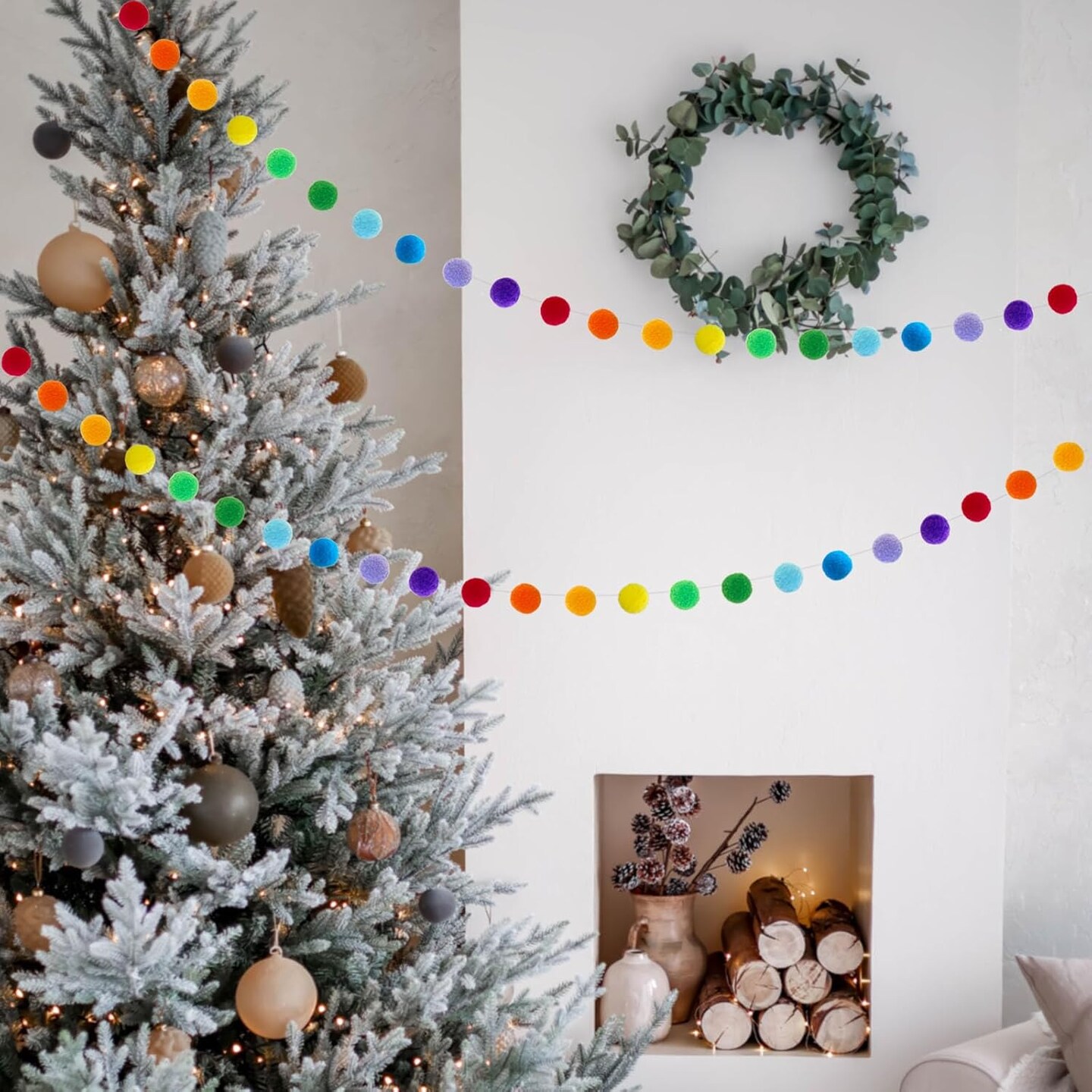 Rainbow Ribbon Felt Ball Garland Fabric Pom Pom Banner(Rainbow)