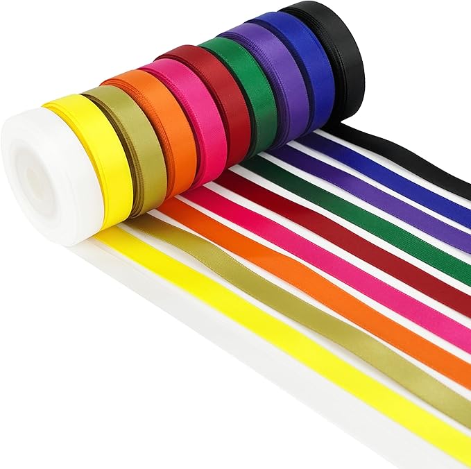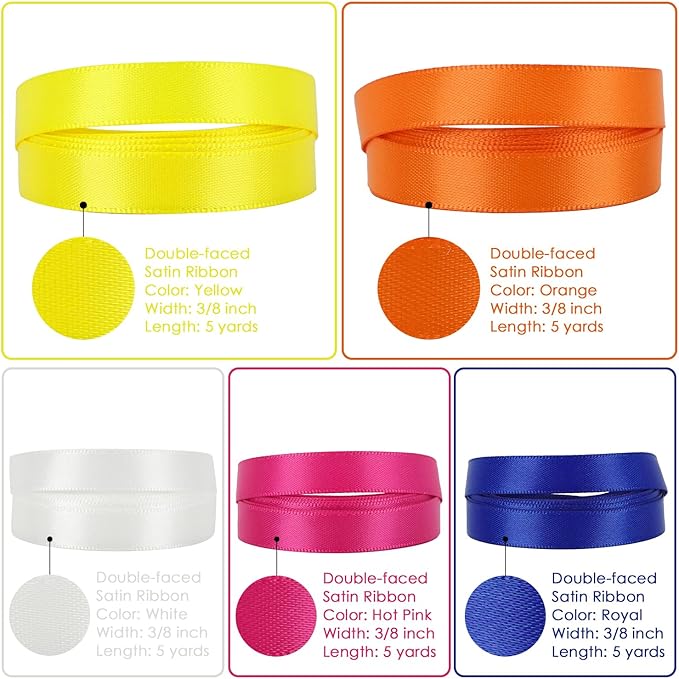 Rainbow Ribbon Set Solid Color Assortment 10 Colors Double Faced Satin Ribbon for Gift Wrapping Double Sided Christmas Ribbon Party Decorations, 3/8" X 5 Yard Each Total 50 Yds Per Package