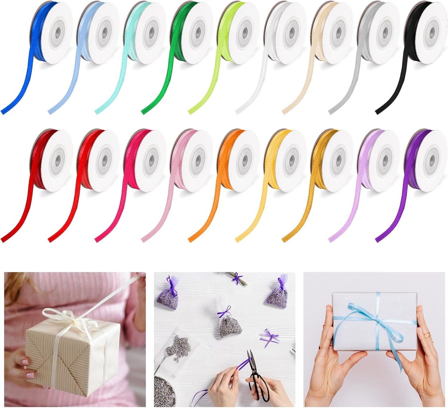 Rainbow Ribbon Solid Color Assortment 18 Colors, 1/8 inch Double Face Satin Ribbon Polyester for Gift Wrapping, DIY Crafts, Happy Birthday Party Wedding Decorations