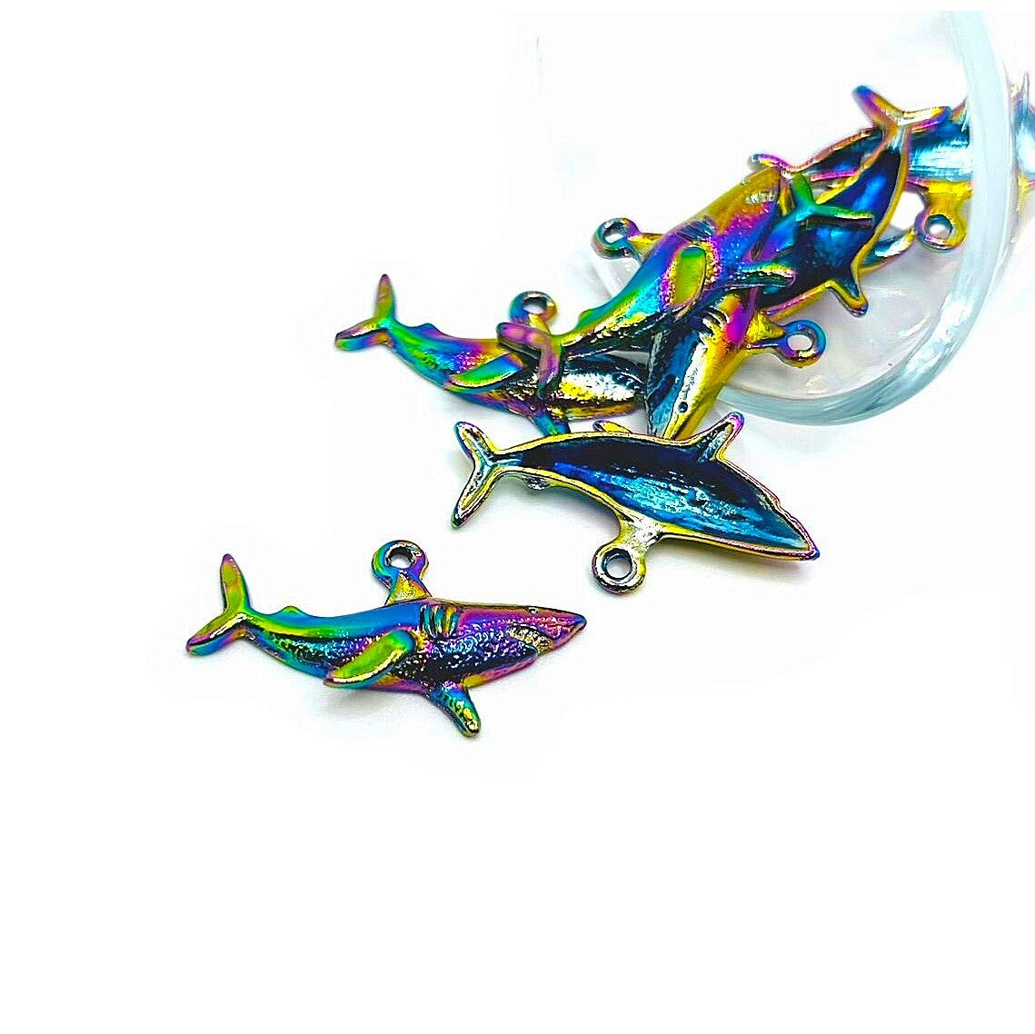 Rainbow Titanium Oil Slick Shark Charms, 19x32mm