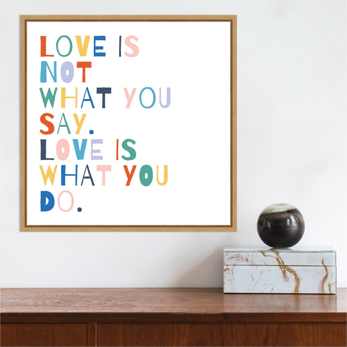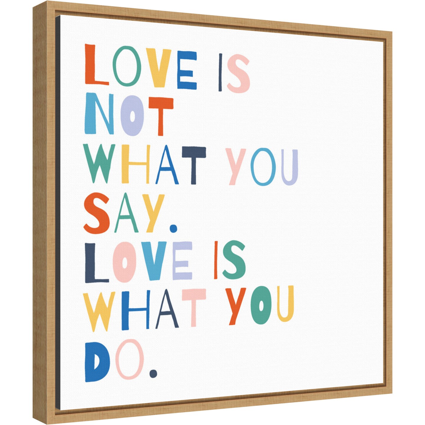 Rainbow Words I by Moira Hershey 16-in. W x 16-in. H. Canvas Wall Art Print Framed in Natural