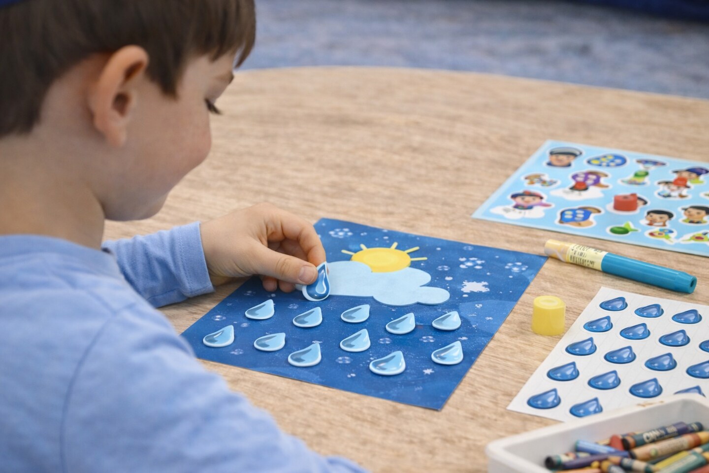 Raindrop Stickers – 240 Pack, 1" Large | 10 Sheets of Blue Water Drop Stickers for Crafts, Rewards, and Classrooms