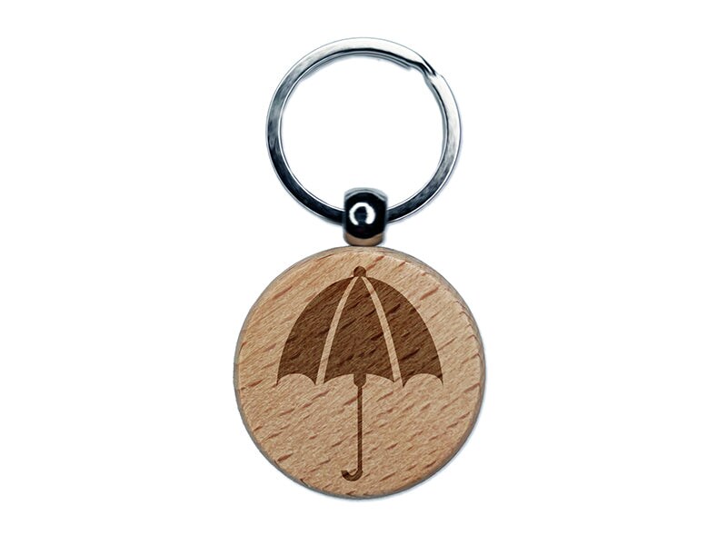 Rainy Day Umbrella Engraved Wood Round Keychain Tag Charm