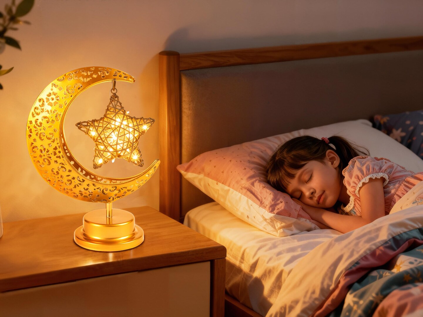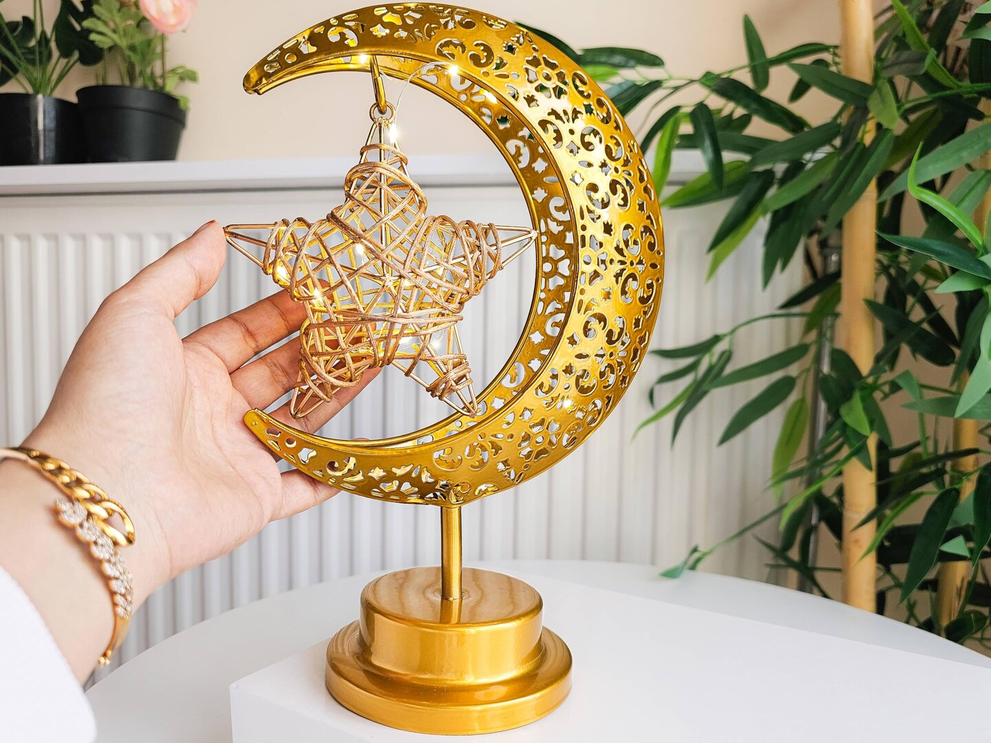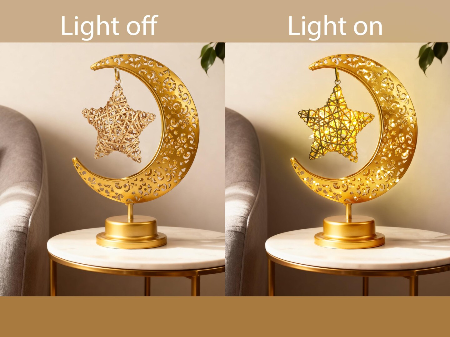 Ramadan Decorations Moon and Stars - Ramadan Lights for Table - Ramadan Decorations for Home 2026 - Ramadan Gifts for Kids Lanterns - Ramadan Decor Moon and Star Lamp - Crescent Moon lamp