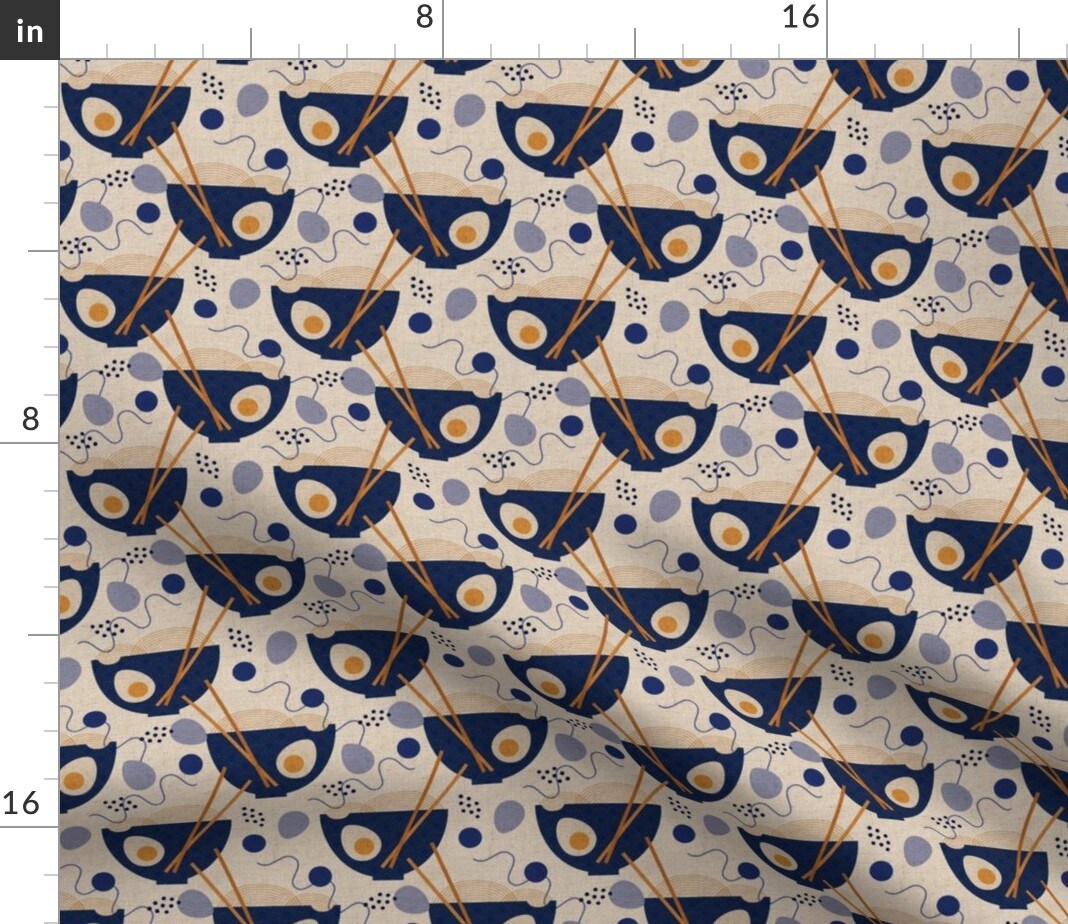 Ramen Food Blue Beige Japanese Boiled Egg Chopsticks Custom Printed Fabric by Spoonflower Various Fabrics by the Yard or Fat Quarter