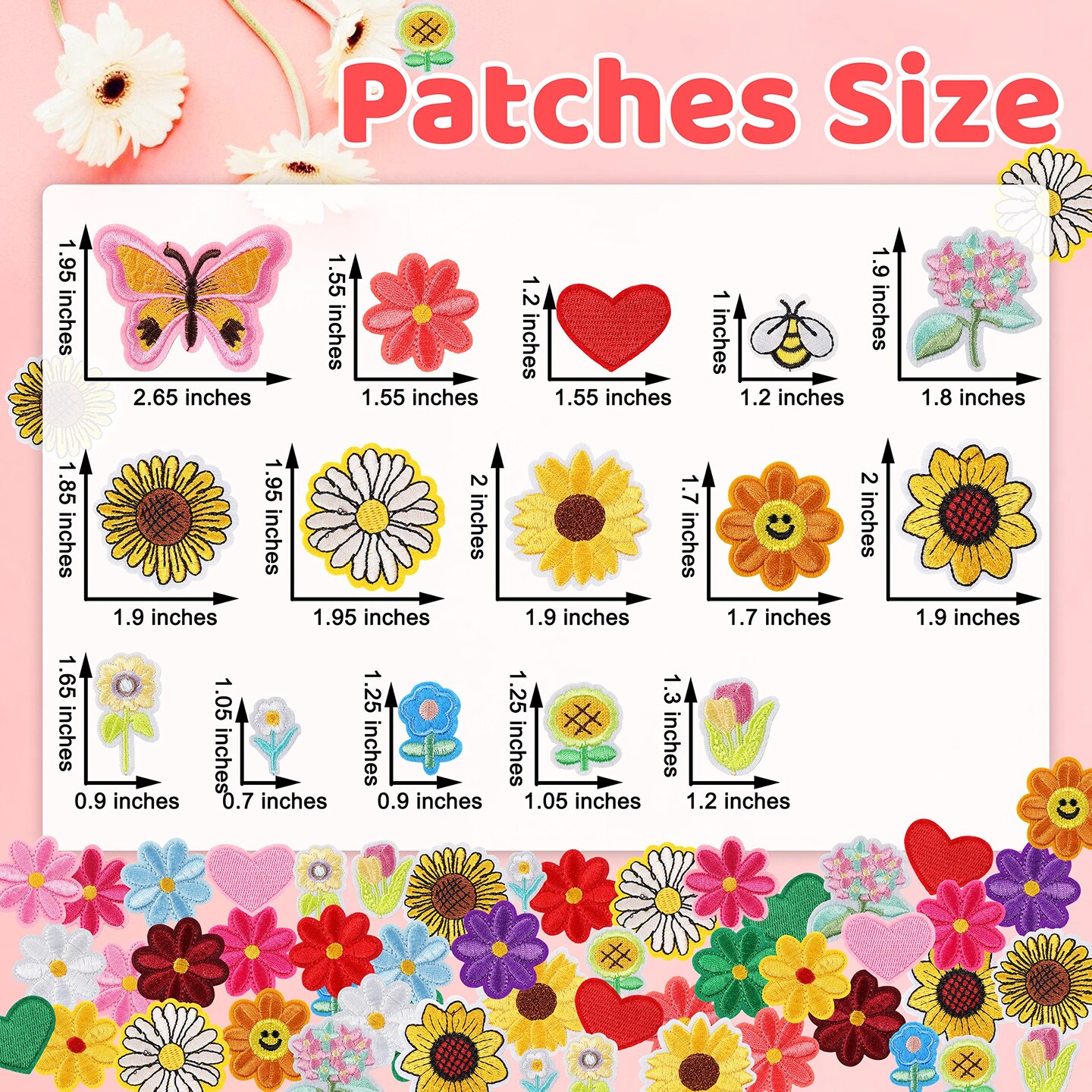 Random Iron on Patches for Clothing: 120PCS Flower Heart Patch Iron on Cute Butterfly Embroidered Sew Applique Repair Patches for Jeans Jackets Backpacks