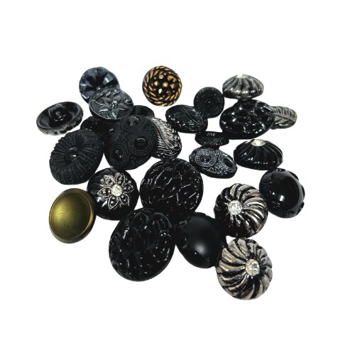 Random Mix of Assorted Vintage Black Glass Buttons (B709) 10X