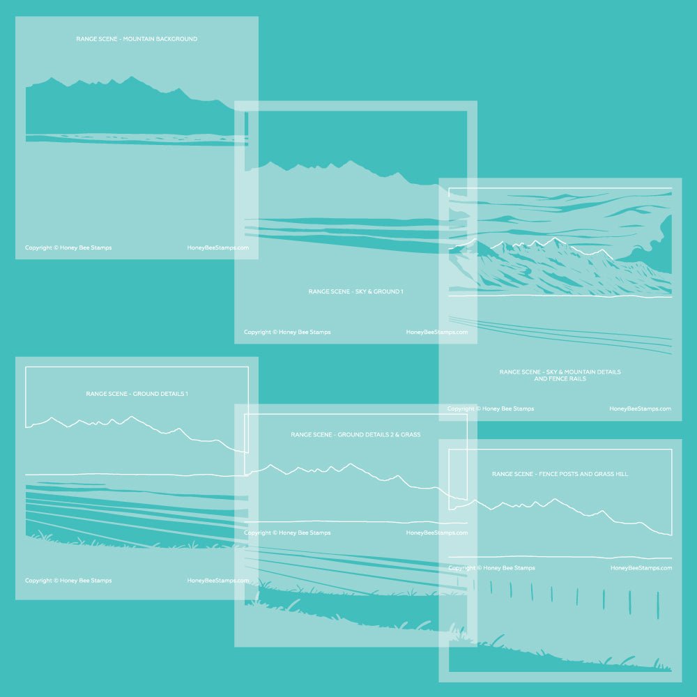 Range Scene - Set of 6 - 6"x6" Layering Stencils