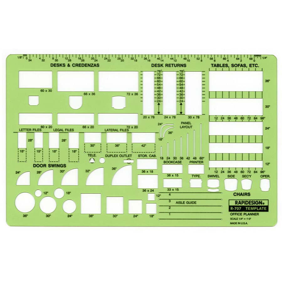 Rapidesign Office Planner Template, 1 Each - 1/4" Scale
