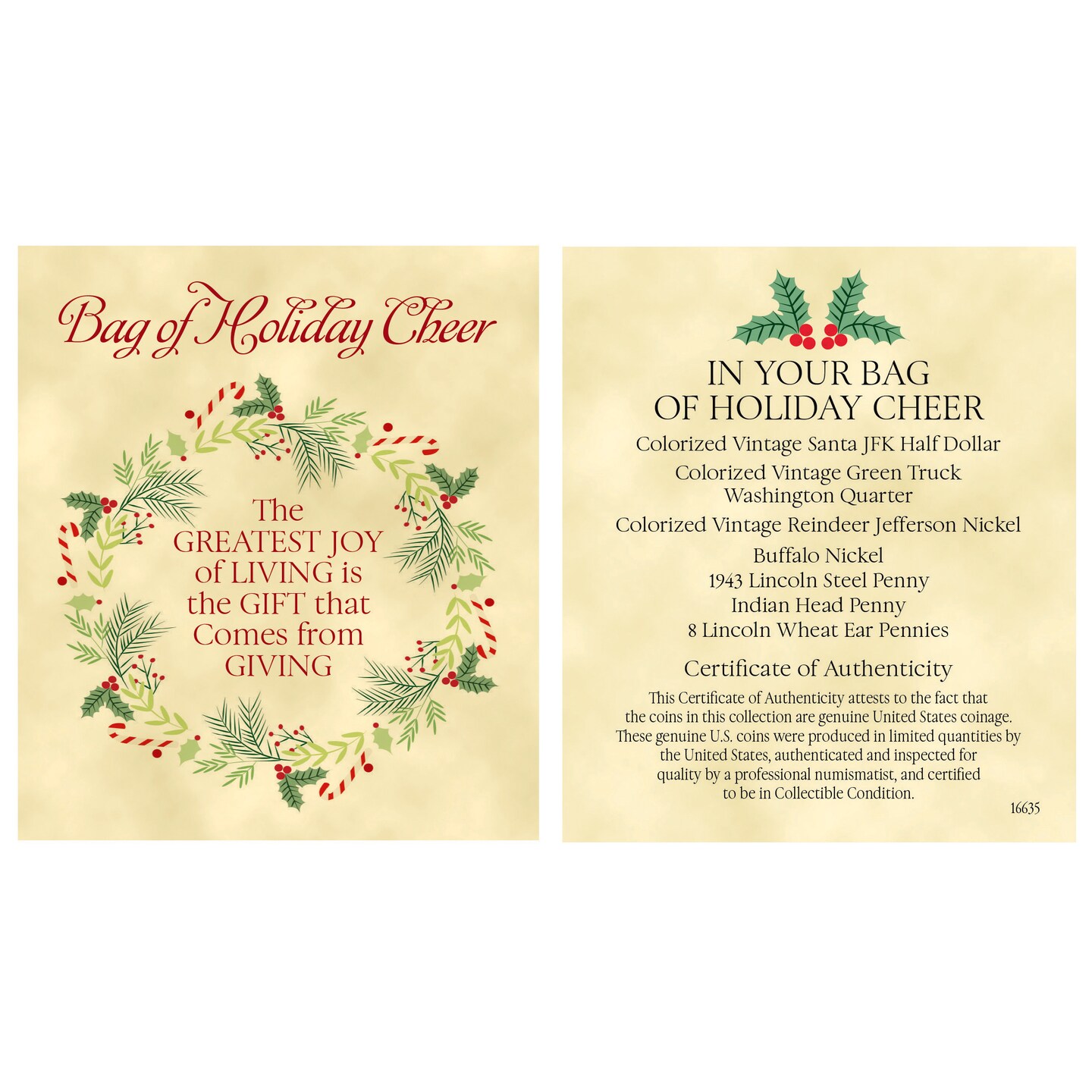 Rare Coins and Colorized Vintage Christmas Coin Collection in Santa Canvas Bag