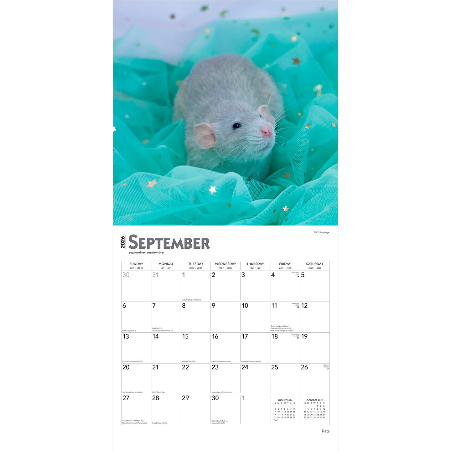 Rats | 2026 12 x 24 Inch (Hanging) Monthly Square Wall Calendar | Plastic-Free