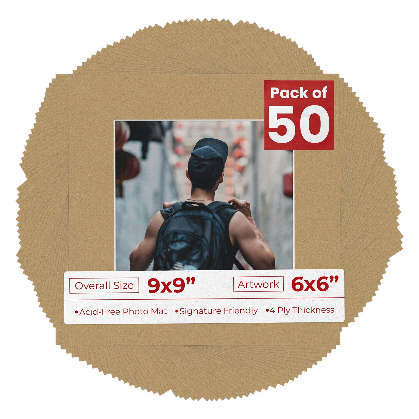 Rattan Beige Mat Board for 9x9 Frames - Fits 6x6 Photos