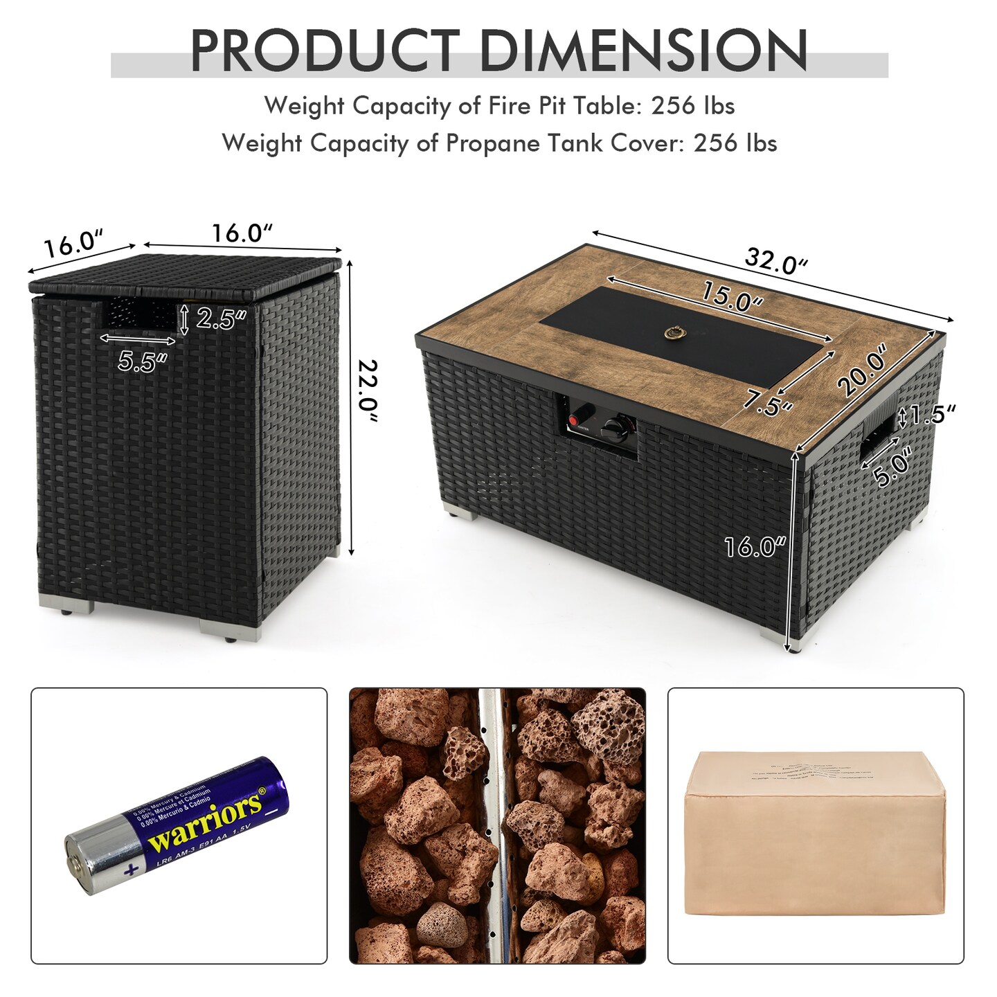 Rattan Propane Fire Pit Table 32x20 Inch with Tank Holder Side Table