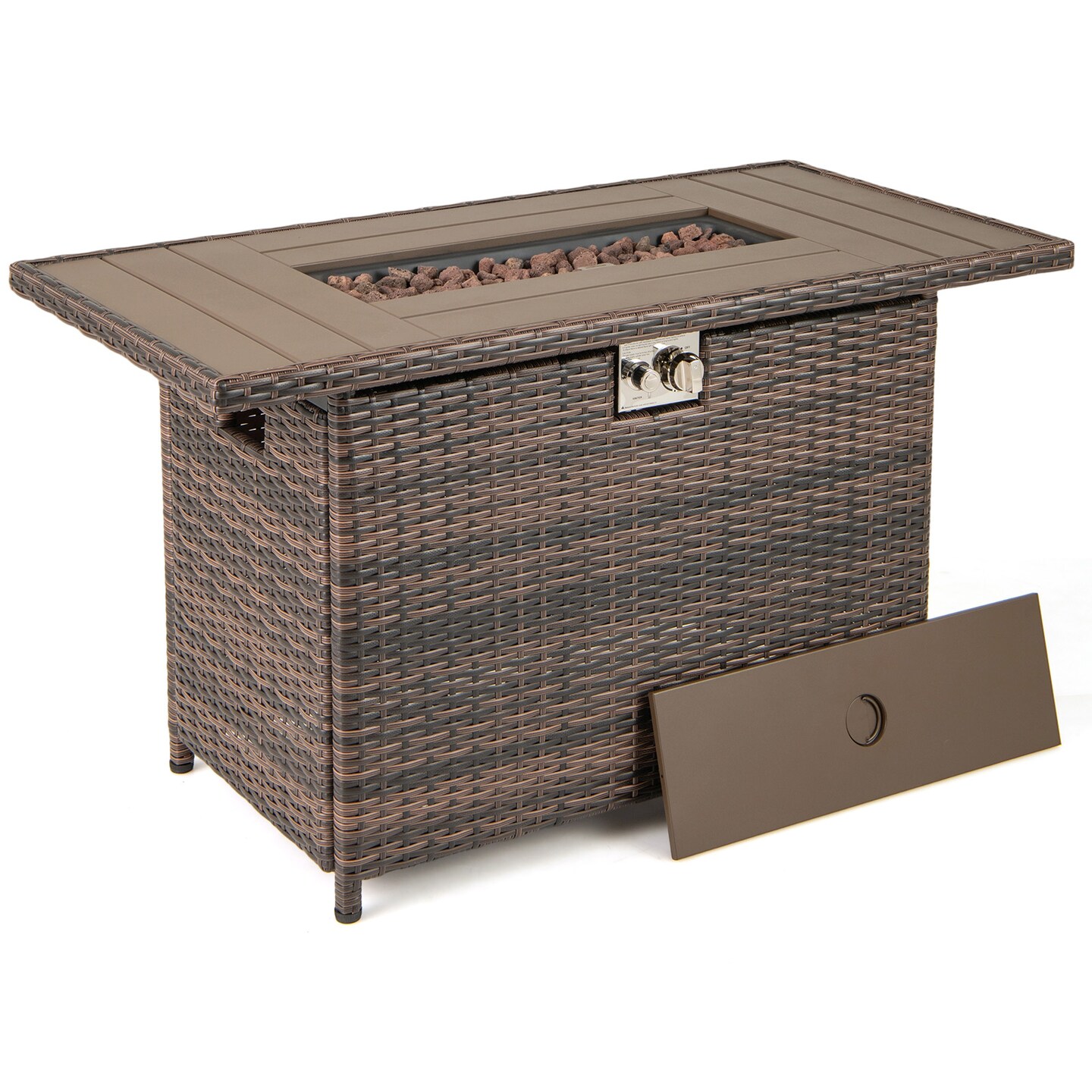 Rattan Propane Fire Pit Table 50,000 BTU w Lid