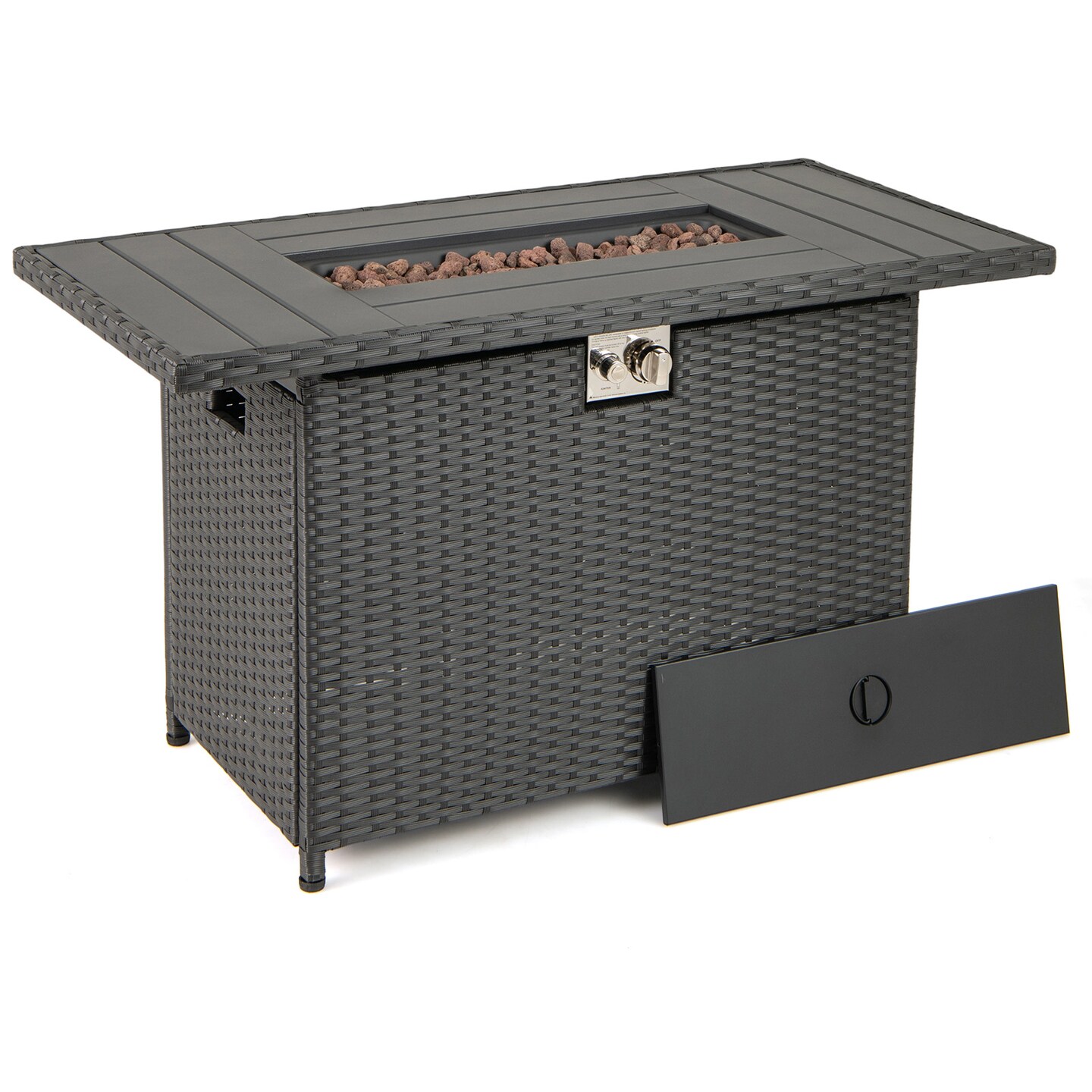 Rattan Propane Fire Pit Table 50,000 BTU w Lid