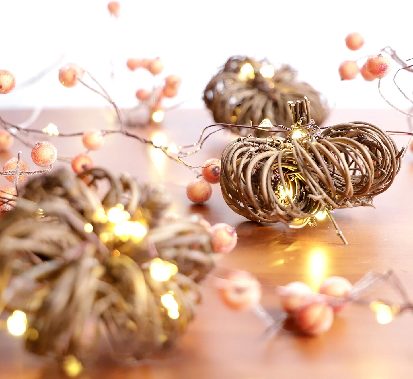 Rattan Pumpkin Garland String Lights - Battery Operated