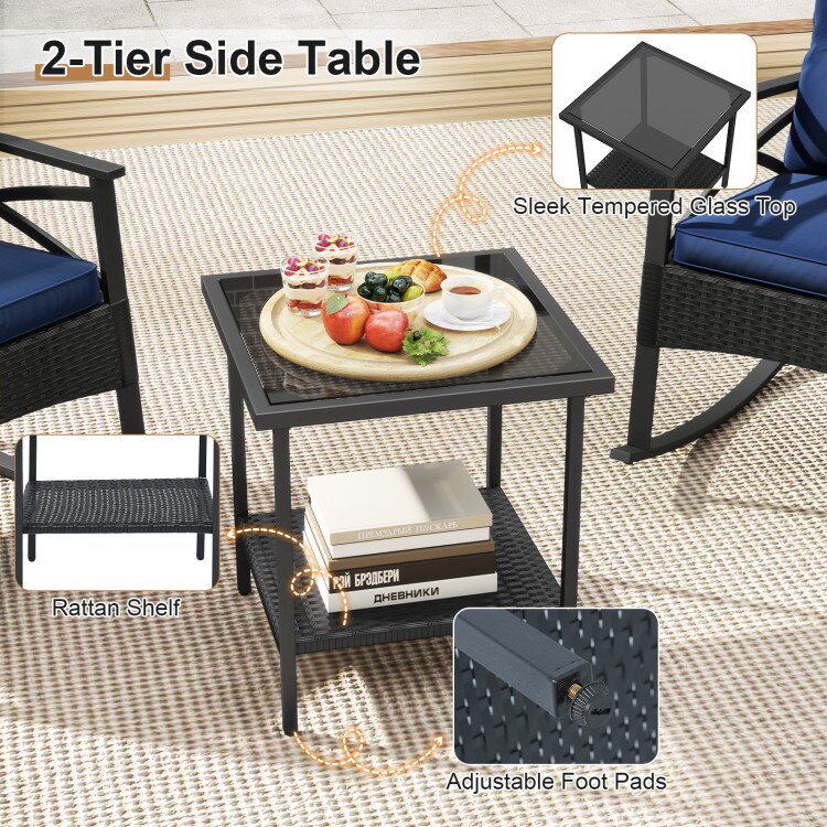 Rattan Rocking Chairs Set of 3 with 2-Tier Side Table for Backyard Patio