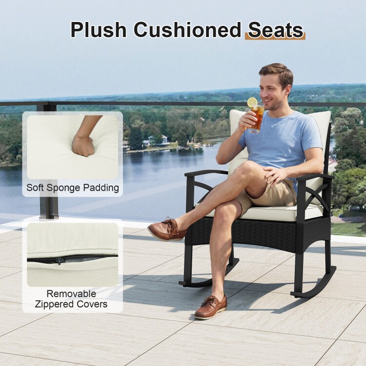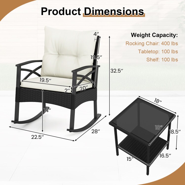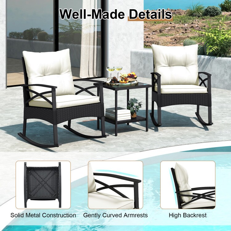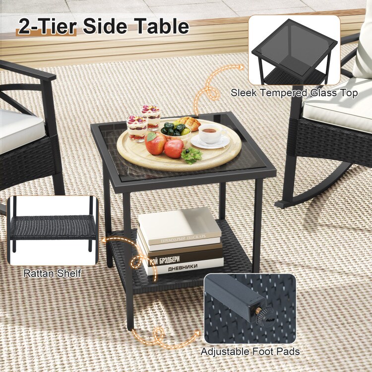Rattan Rocking Chairs Set of 3 with 2-Tier Side Table for Backyard Patio