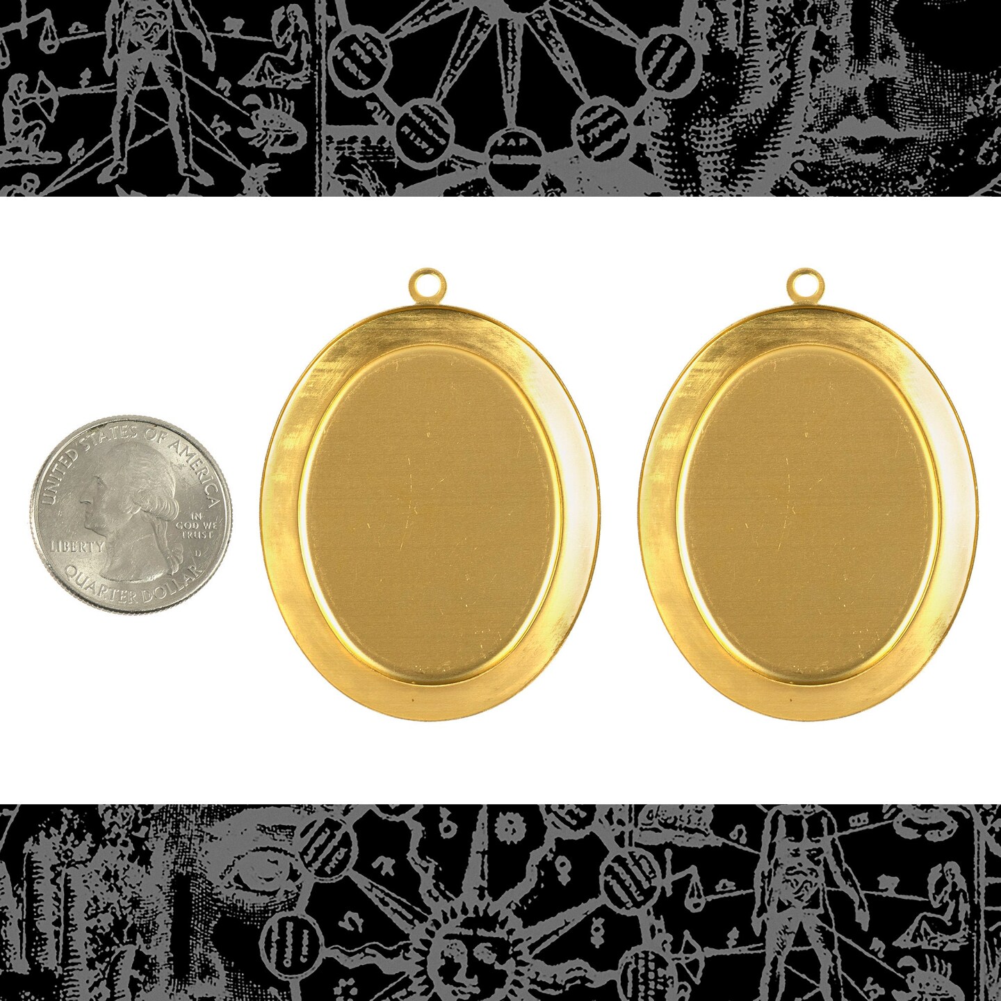 Raw Brass 30mm x 40mm Cameo Frames with Smooth Border - Set of Two - B-F37