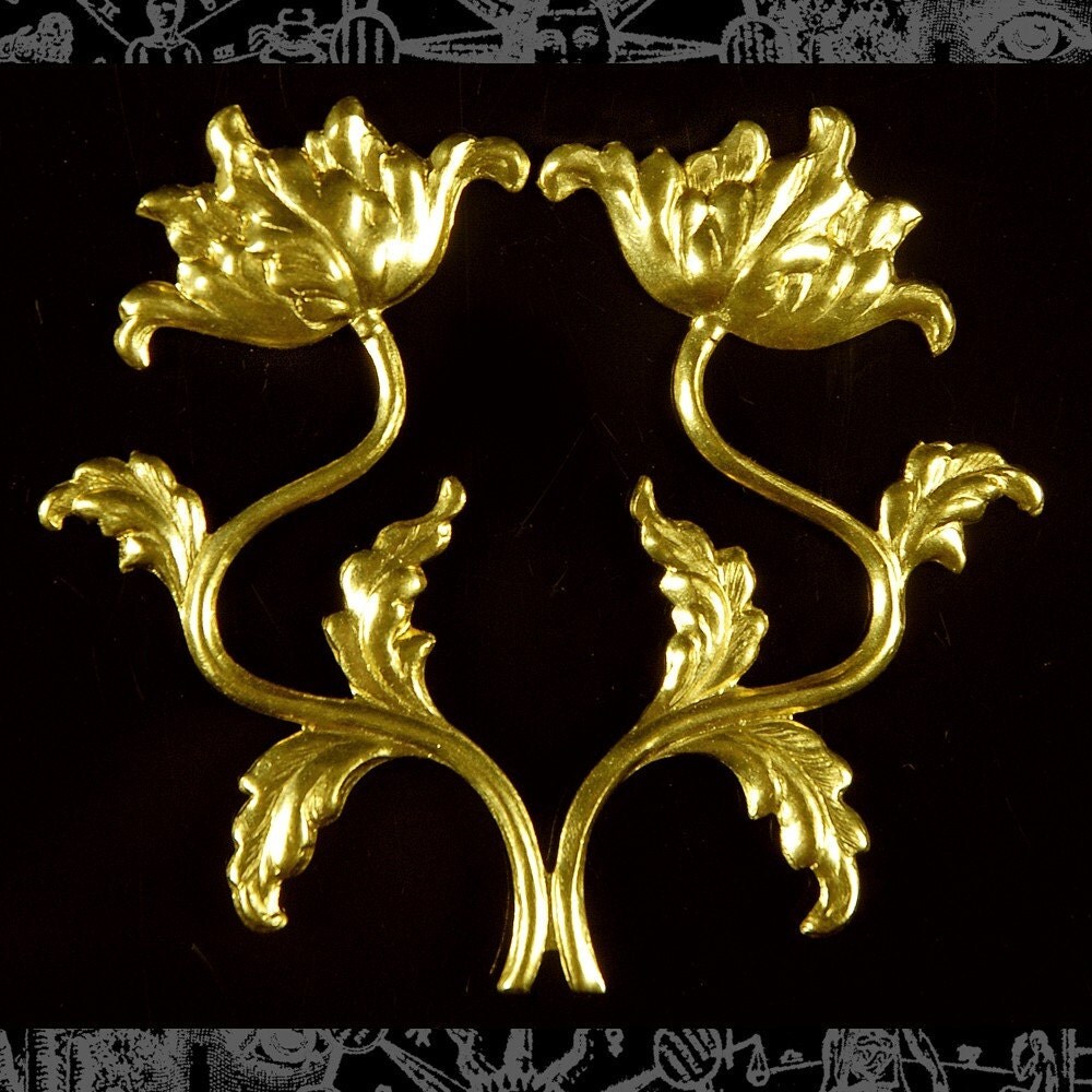 Raw Brass Art Deco Mirror Image Floral Wrap - B-W07