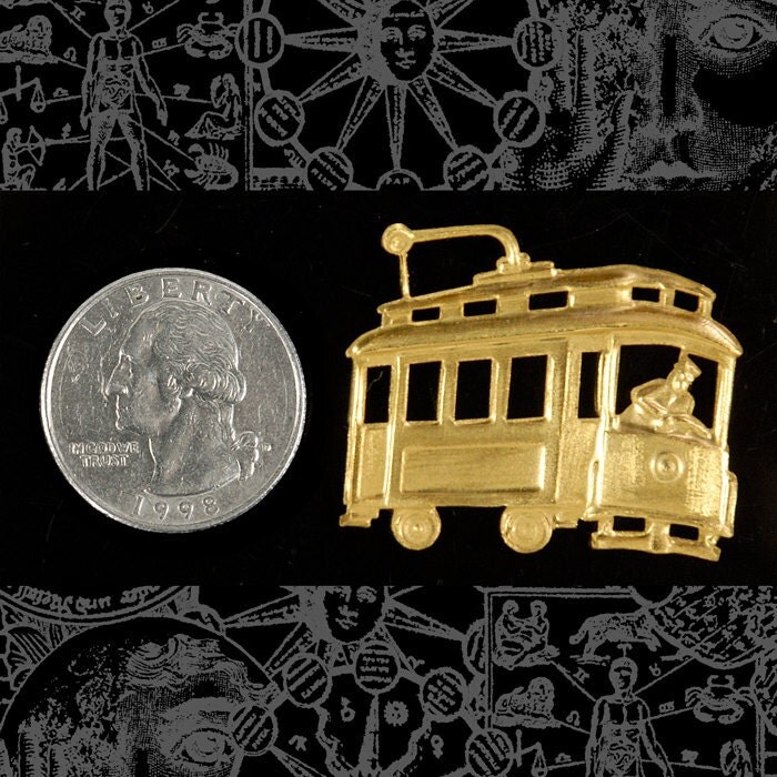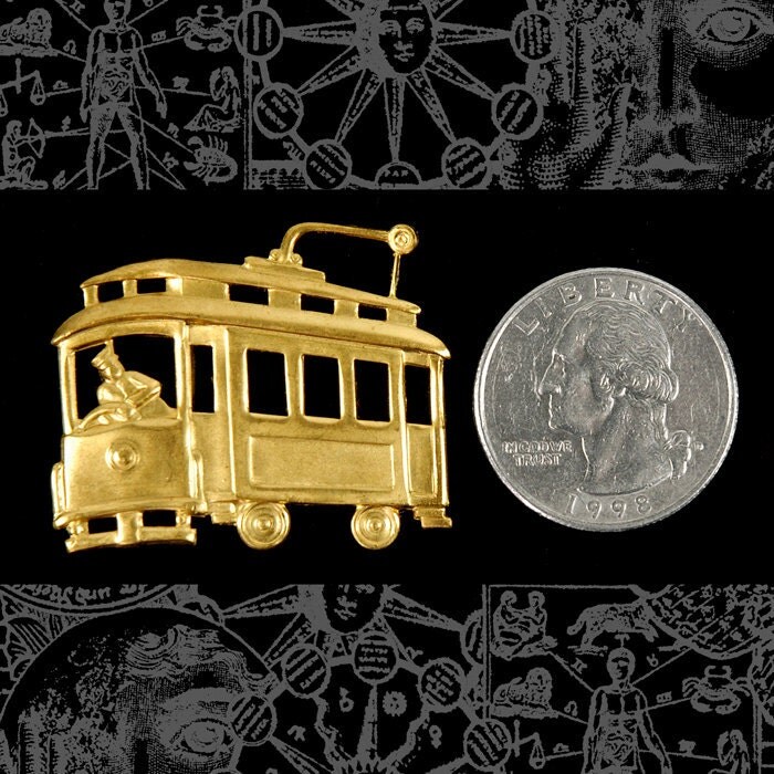 Raw Brass Cable Car Stamping Pendant - XXX - B-P45